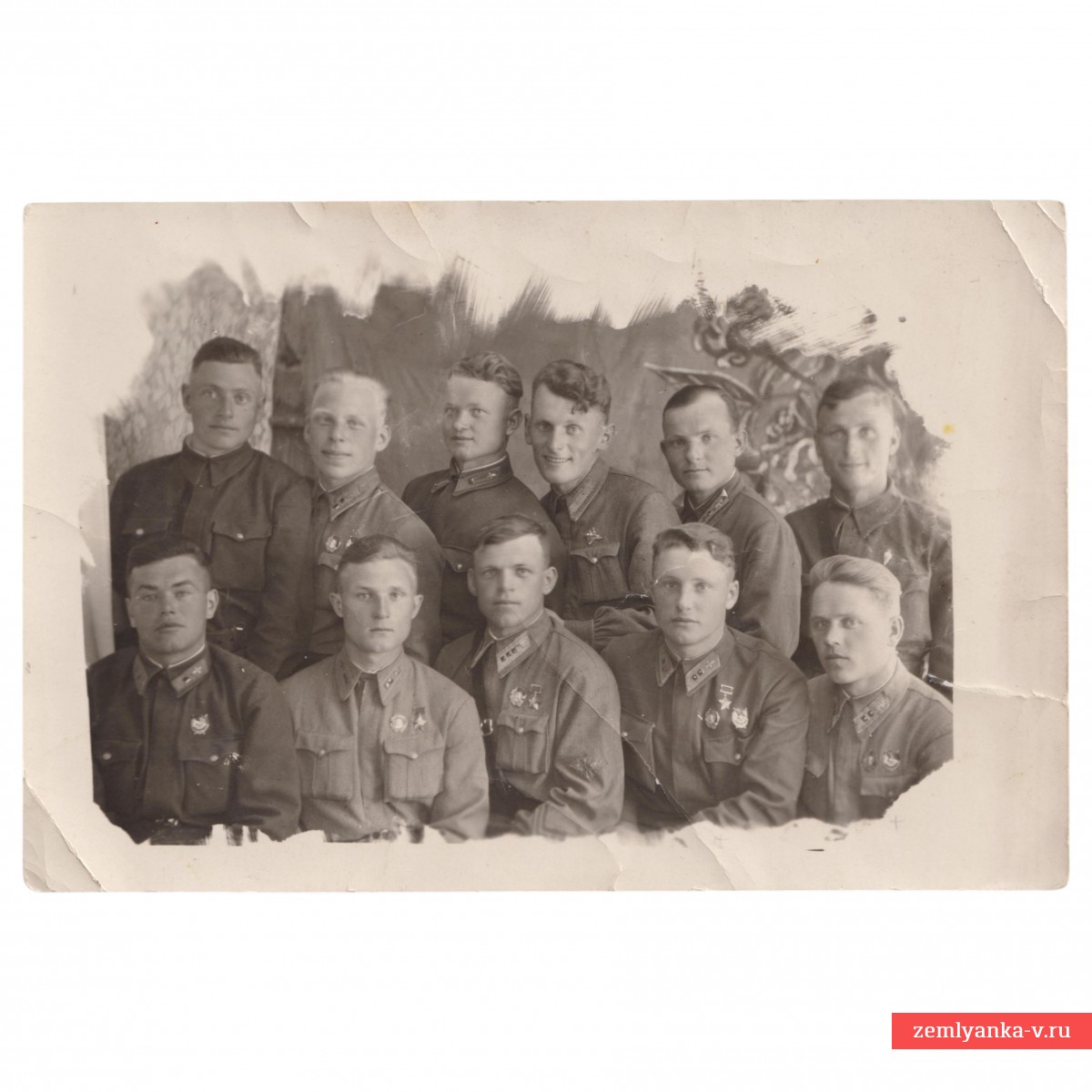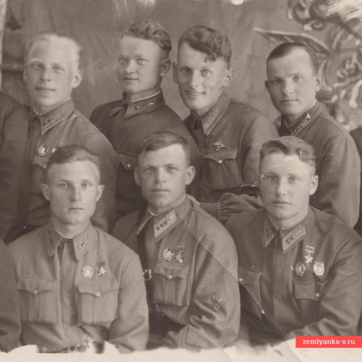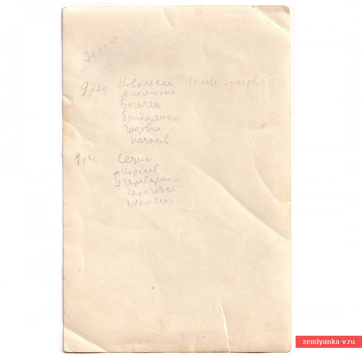 An original and very rare photograph depicting the pilots of the Red Army Air Force. There are three Heroes in the center of the bottom row. Signed on the back. The size is 115*182 mm. Guarantee of authenticity.