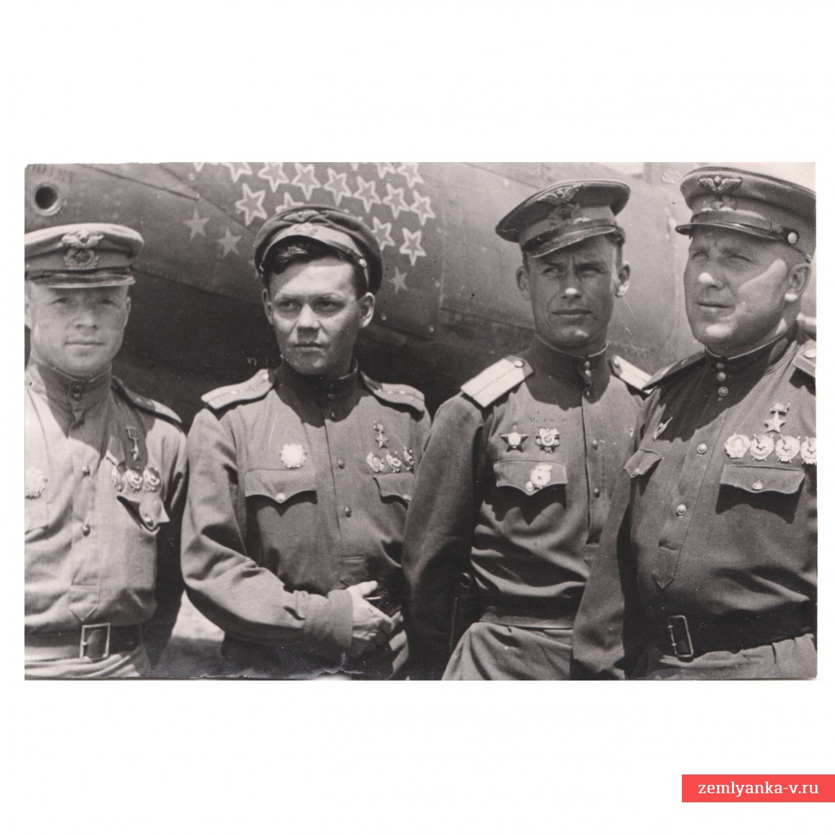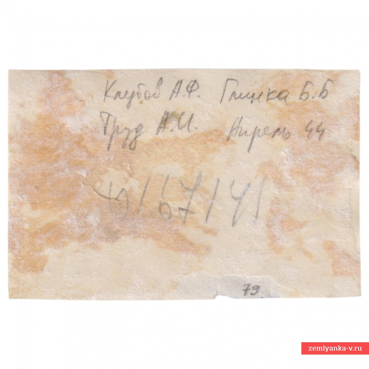 The original photo is in good collector's condition. The size is 69*107 mm. The reverse side shows the traces of pasting into the album. The photo shows three at once Heroes of the Soviet Union: Alexander Fedorovich Clubs (1918-1944), Boris Borisovich Glinka (1914-1967) and Andrey Ivanovich Trud (1921-1999). Guarantee of authenticity.
