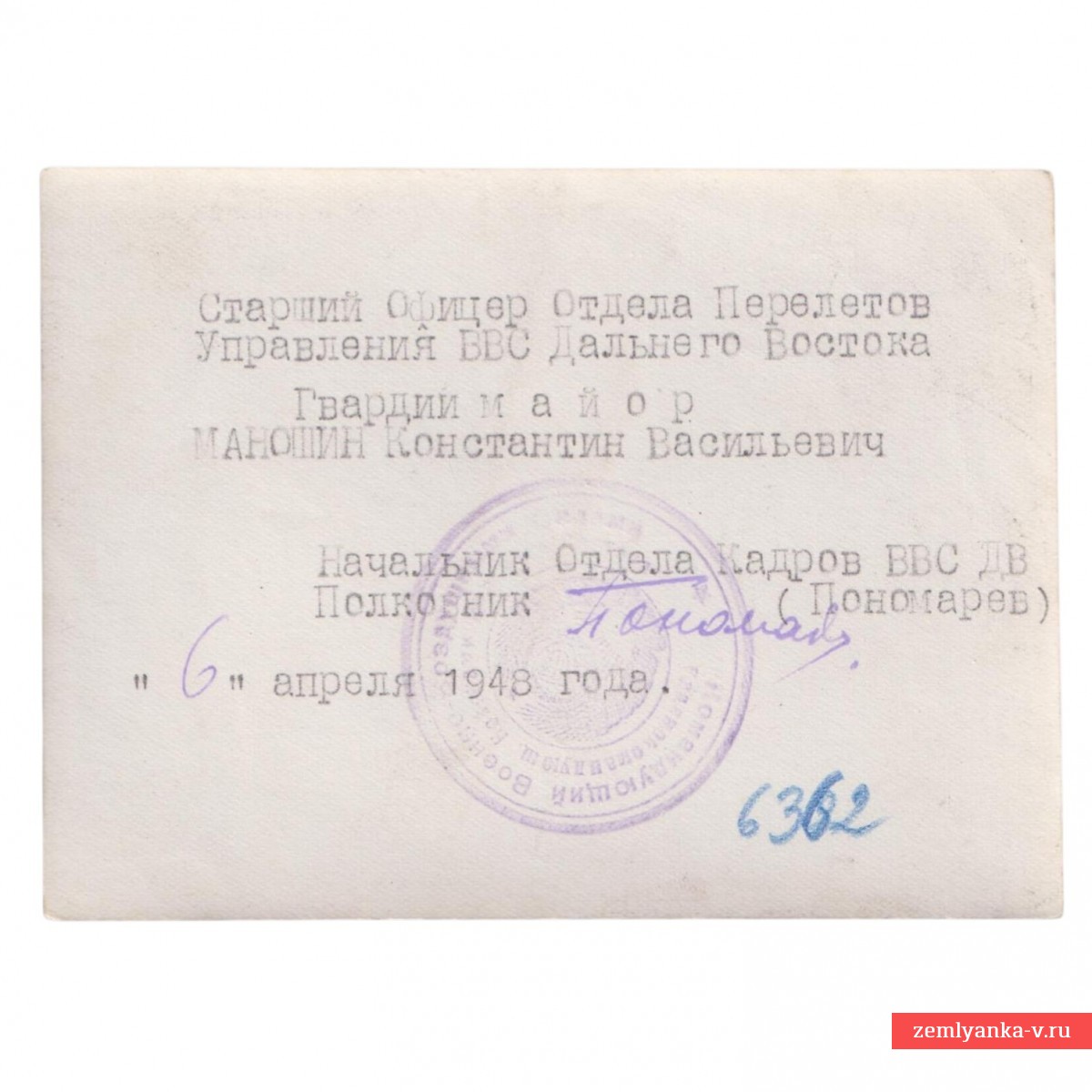 Konstantin Vasilyevich Manoshin (1917-1971) was a lieutenant colonel in the Soviet Army and a participant in the Great Patriotic War. Hero of the Soviet Union (1944). Member of the CPSU (b) since 1943. He was born on May 11 (24), 1917 in the village of Suksun, Krasnoufimsky district, Perm province (now the district center of the Suksun district of Perm Krai). He graduated from nine grades of school. In 1935, he was called up to serve in the Red Army. In 1938 he graduated from the Engels Military Aviation School of Pilots. Since September 1942, he served on the fronts of the Great Patriotic War. By July 1944, Guards Major Konstantin Manoshin was the navigator of the 64th Guards Fighter Aviation Regiment of the 4th Guards Fighter Aviation Division of the 1st Guards Fighter Aviation Corps of the 3rd Air Army of the 1st Baltic Front. By that time, he had flown 132 combat missions, participated in 38 aerial battles, personally shooting down 12 enemy aircraft personally and 4 in a group. By decree of the Presidium of the USSR Armed Forces dated October 26, 1944, for "courage and heroism shown in aerial combat," Senior Lieutenant Konstantin Manoshin was awarded the high title of Hero of the Soviet Union with the award of the Order of Lenin and the Gold Star medal. After the end of the war, he continued to serve in the Soviet Army. In 1964, he was discharged from the reserve with the rank of lieutenant colonel. He lived in Voronezh. He died on August 23, 1971, and was buried at the Levoberezhny cemetery.