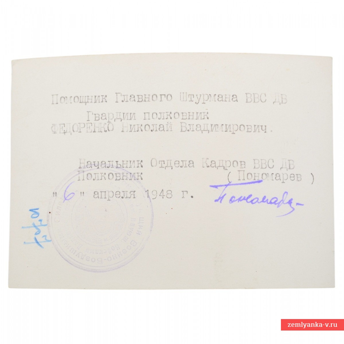 Later, as part of the 8th Air Army, he participated in the liberation of Poland, in the Berlin operation. By the end of the war, Colonel Fedorenko had flown 197 combat missions. After the war, he continued to serve in the Air Force. In 1952, he graduated from the advanced training courses for chief navigators at the Air Force Academy. Since 1955, Colonel N. V. Fedorenko has been in the reserve. He lived in Odessa. He died on December 23, 1994. He was buried at the 2nd Christian Cemetery in Odessa. He was awarded two Orders of Lenin, four Orders of the Red Banner, the Order of Alexander Nevsky, two Orders of the Patriotic War of the 1st degree, the Order of the Red Star, and medals.