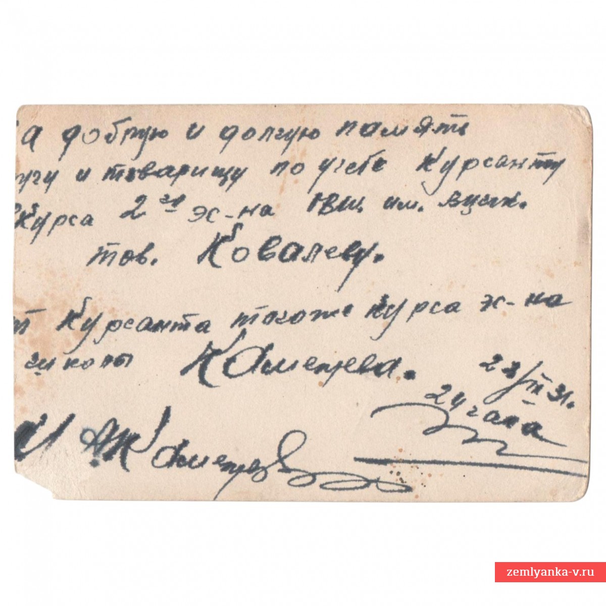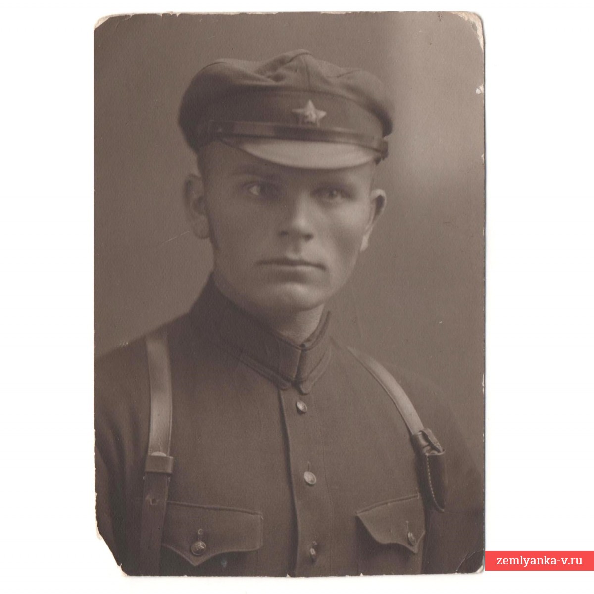 The original photo is in excellent collector's condition. The Red Army soldier depicted in the photo is wearing a 1924 tunic, a 1926 colored cap, and field equipment. The size is 85*125 mm. The reverse side contains a donation signature. Guarantee of authenticity.
