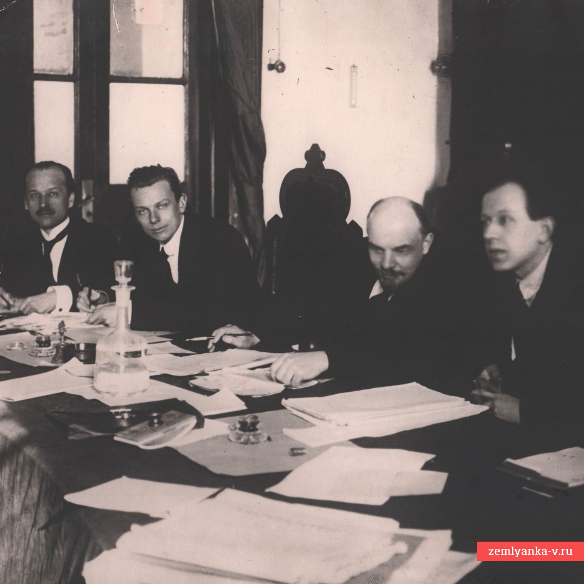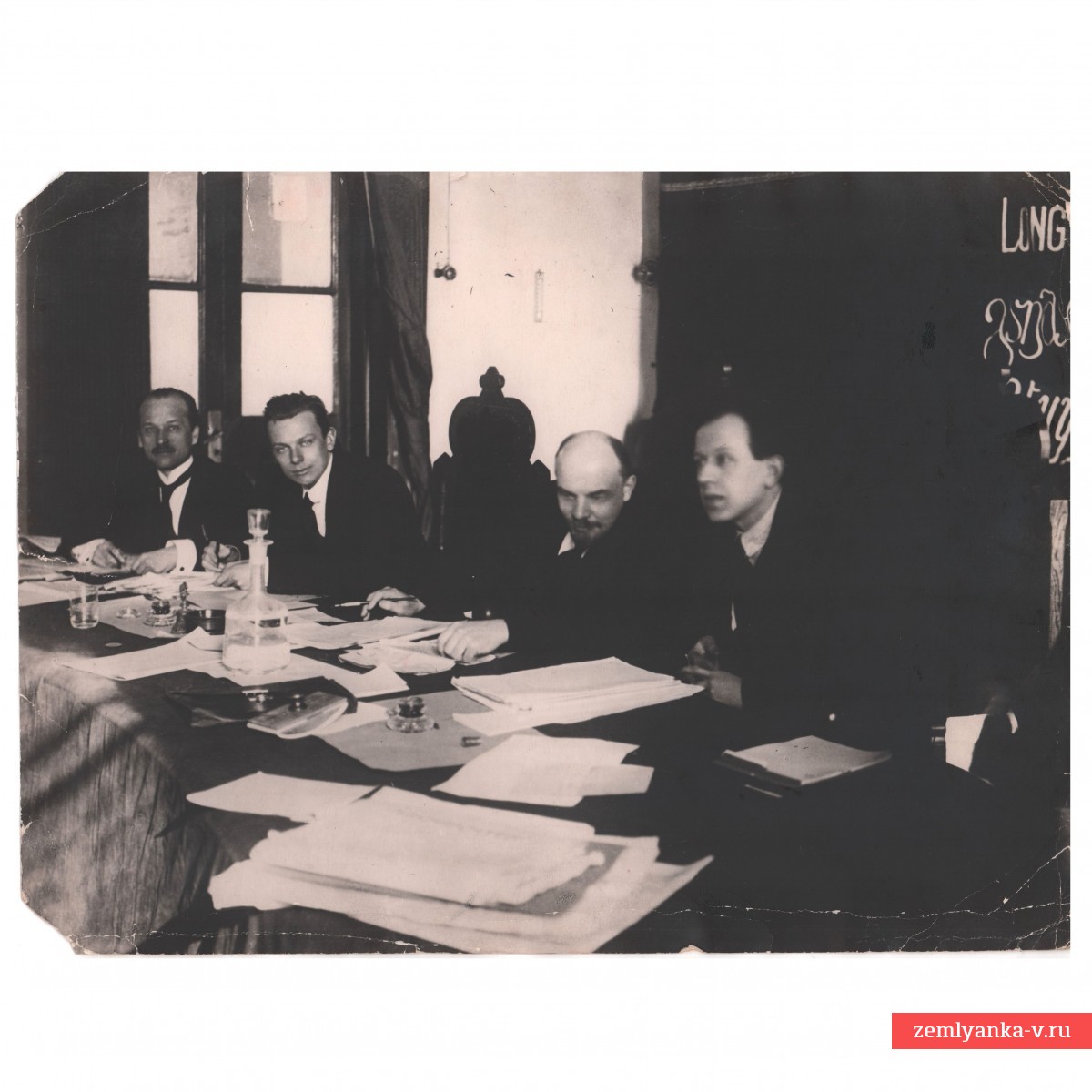 An extremely rare large-format photograph taken in 1919 during the 1st Congress of the Comintern, which depicts the leader of the CPSU (b) and the Soviet state, V.I. Lenin, as well as a number of European communist leaders.: