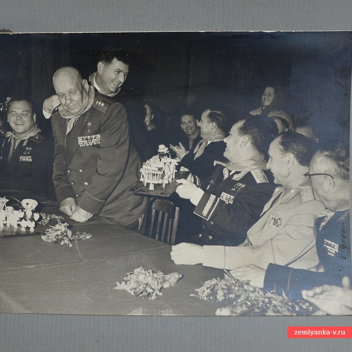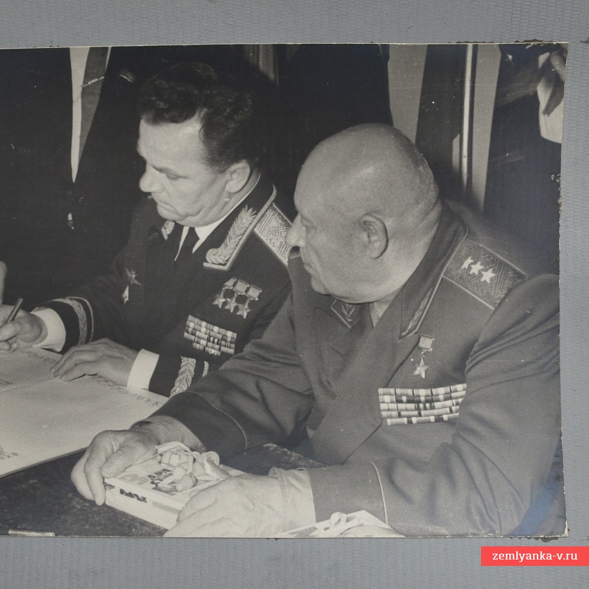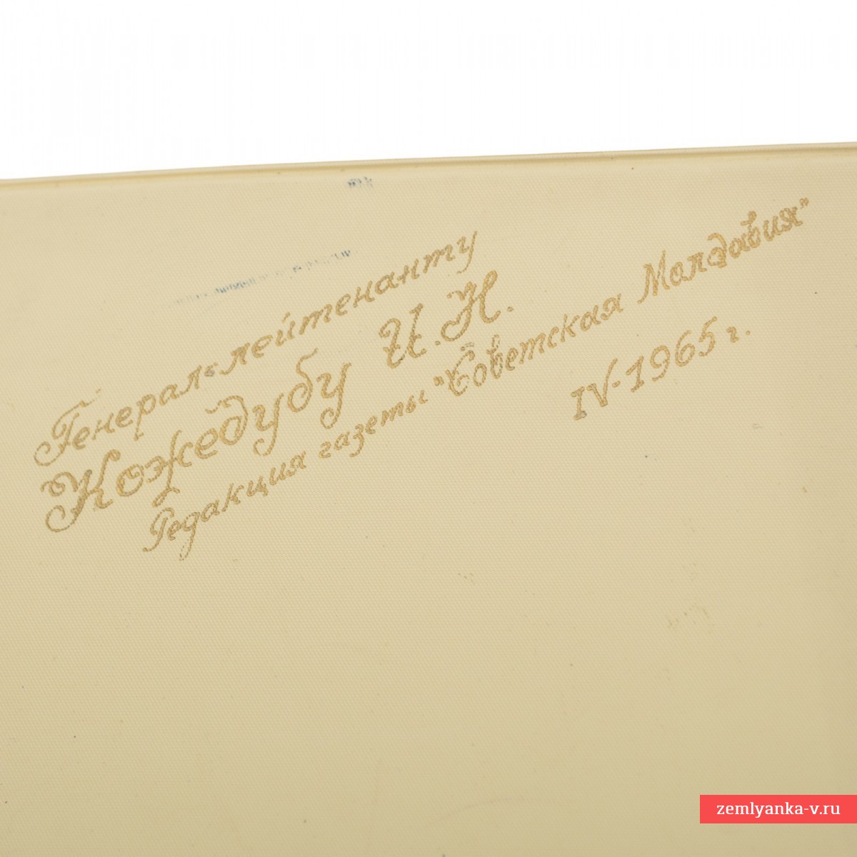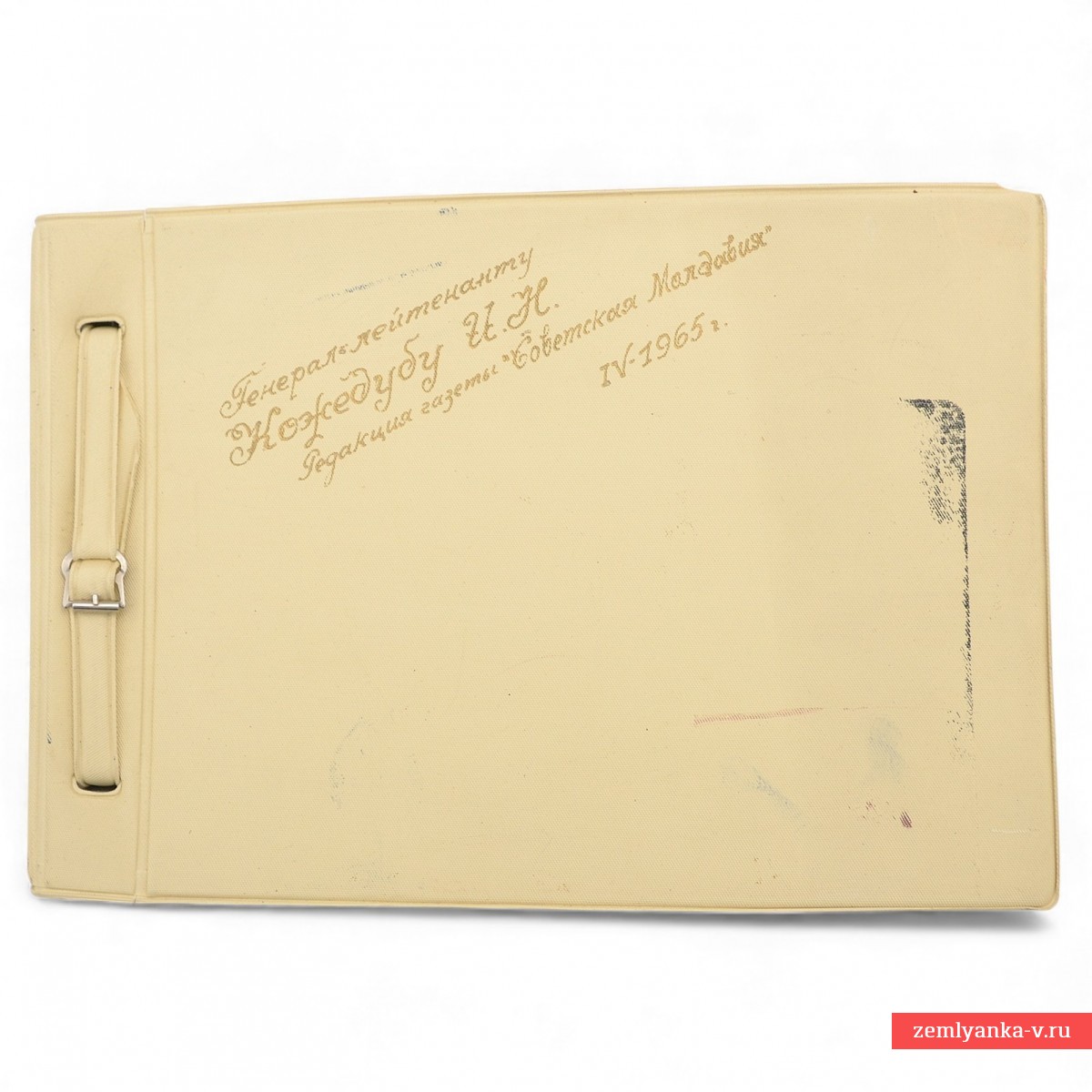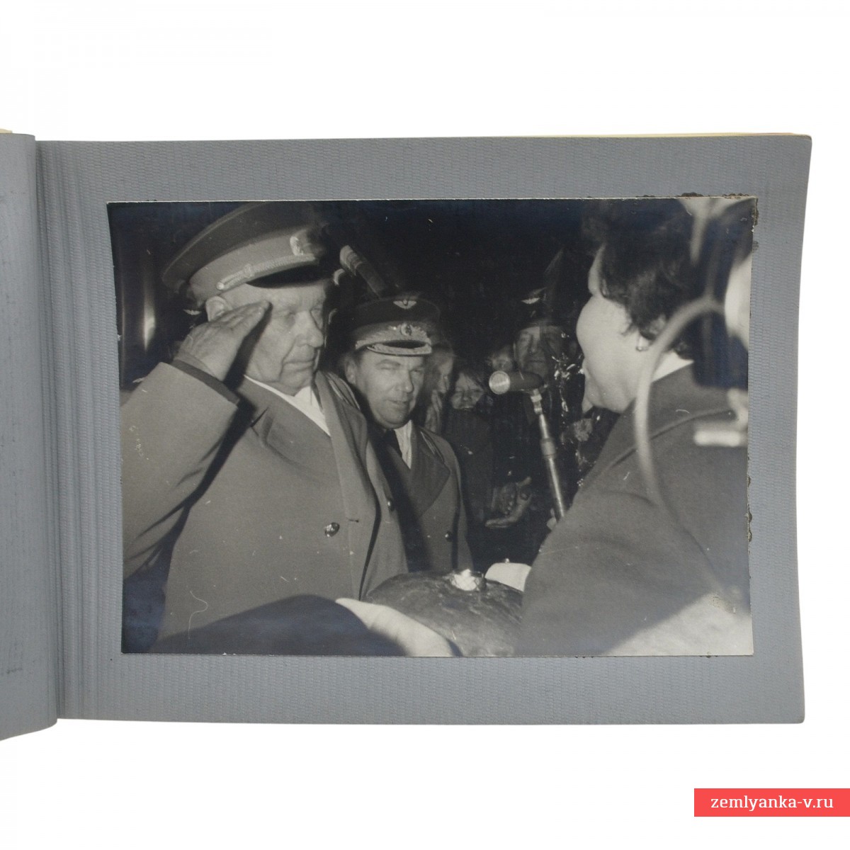 The original gift photo album, made, apparently, following the results of the famous pilot's trip to Chisinau. The album has a hardcover covered in leather. The format is 245*170 mm. There are 16 photos in the album, 13 of which depict Kozhedub. The pages are deformed (the bottom and top edges are bent upwards). Guarantee of authenticity.