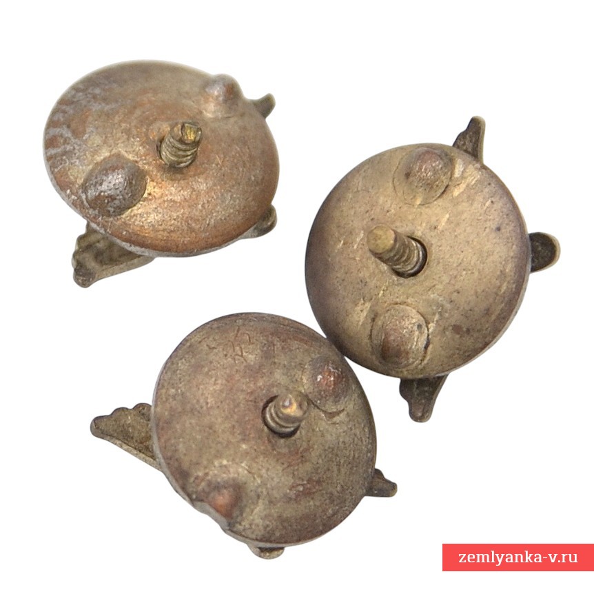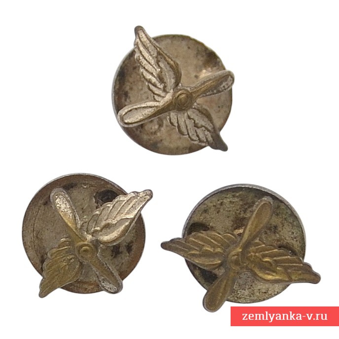Steel, frosty silver plating. The lot consists of three GVF birds on twists. All the emblems are in almost perfect condition. Extremely rare. They belonged to the founder of Russian civil aviation, V.Y. Jungmeister, and were acquired directly from his family. Guarantee of authenticity.