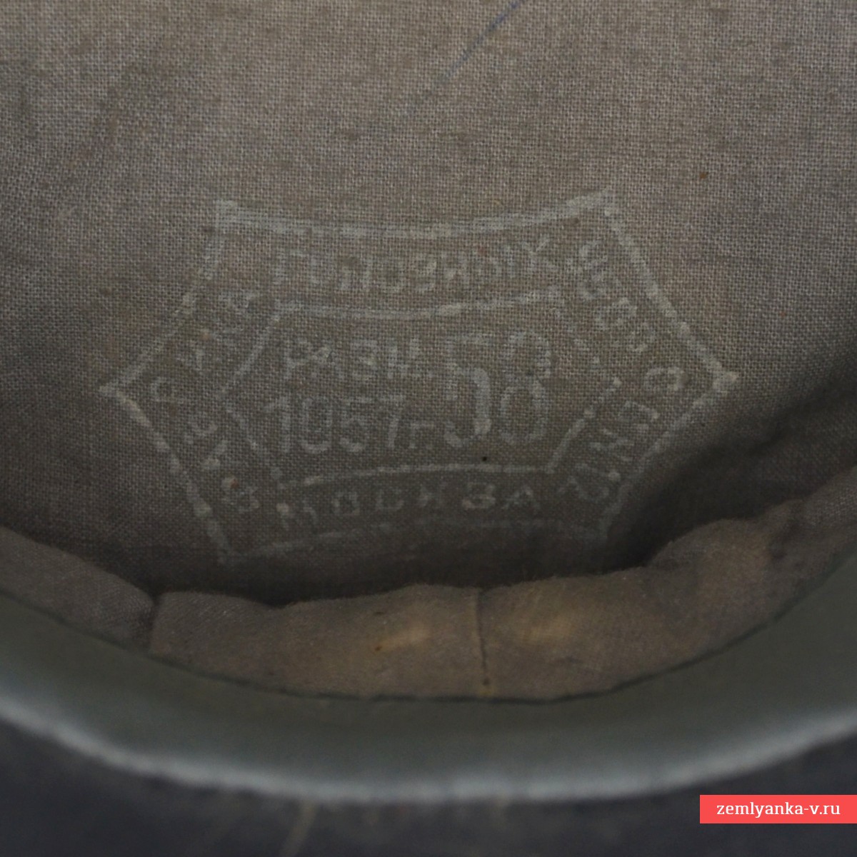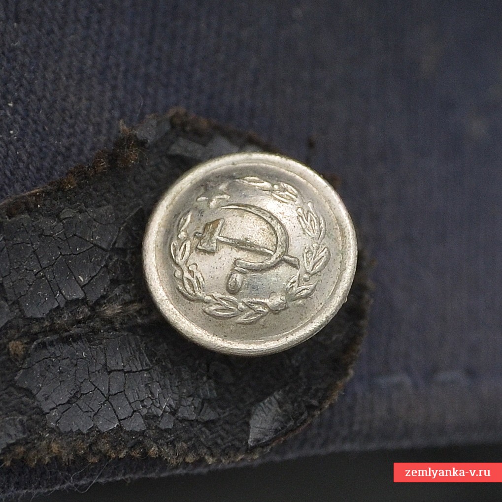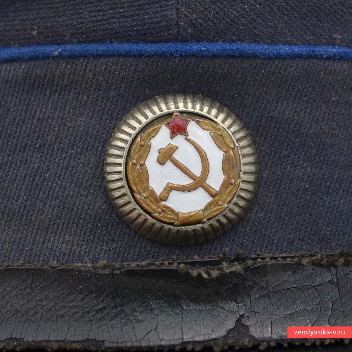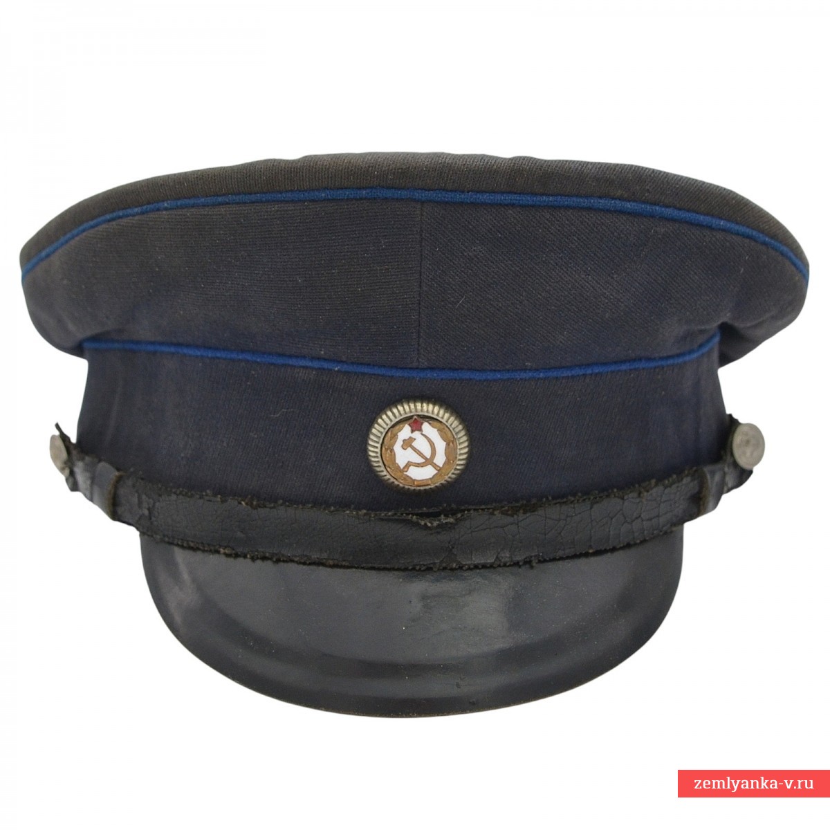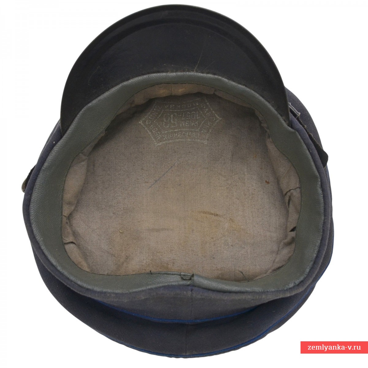 An original and very rare cap in good collector's condition. The cap is sewn from a semi-wool diagonal of dark blue color, equipped with a plastic semicircular visor, a collar and nickel-plated buttons with the image of a hammer and sickle, installed for wearing by the staff of correctional labor colonies. The manufacturer's stamp with the 1957 release date is perfectly legible on the cotton bottom. Size 58. Guarantee of authenticity.