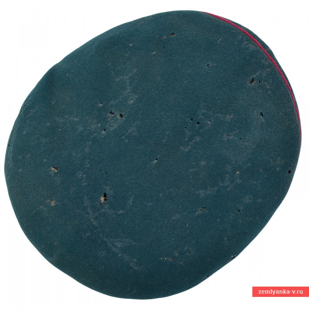 An extremely rare and interesting cap in a good collector's condition. Unfortunately, we could not accurately attribute the item, but we can say with confidence about its authenticity and the time of release – the end of the 1920s. The band is black velvet, the crown of the sea-green cloth, the edges are crimson, the visor is plastic. The manufacturer's stamp is applied in silver on the lining. The top of the crown has multiple moth damage. The star of the sample of 1922 was put by us, but it is quite likely that in its place there should be another cockade. The cap was discussed here https://forum.ww2.ru/index.php?showtopic=4935490 however, the users did not come to an exact answer, so we will be grateful for any comments. Guarantee of authenticity.