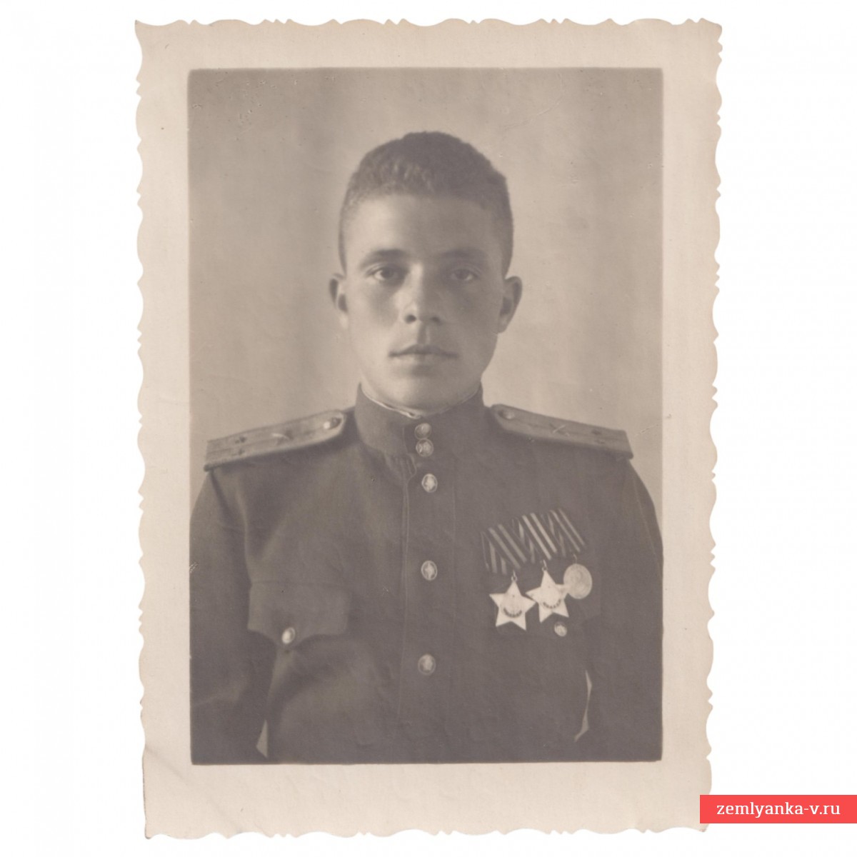 An original and rather rare photograph in good condition. The rarity is due to the presence of two orders of Glory for an officer at once (as you know, this is a soldier's order). The size is 80*115 mm. Guarantee of authenticity.