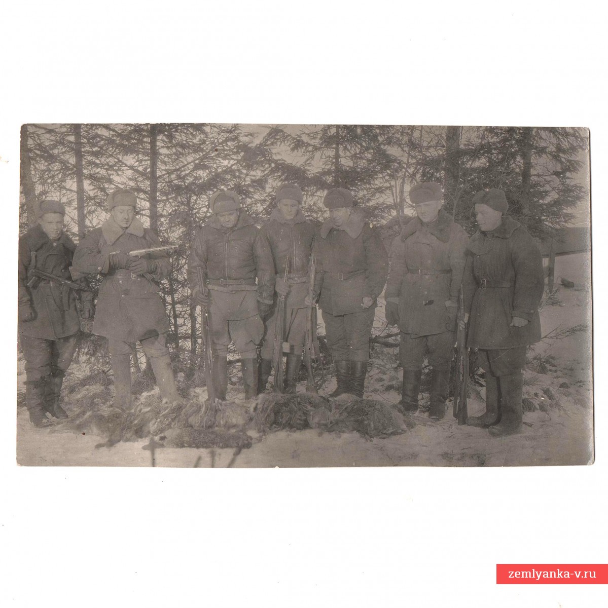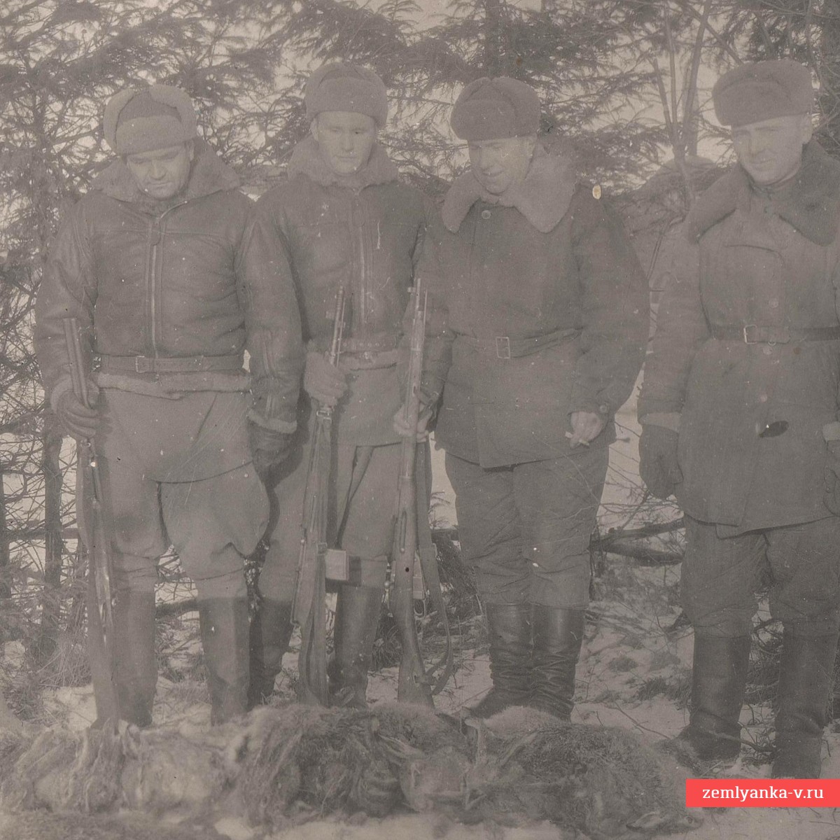 An original and rather rare front-line photograph in good collector's condition. On the reverse side is the inscription "Front 1943". In the photo, Lieutenant Colonel V.I. Dymchenko, commander of the regiment, is sitting at the door of the car, Major M.P. Popov, navigator of the regiment, is driving. Read more about the regiment commander here http://allaces.ru/p/people.php?id=29 . The size is 100*165mm. From the front album by M.P. Popov. Guarantee of authenticity.