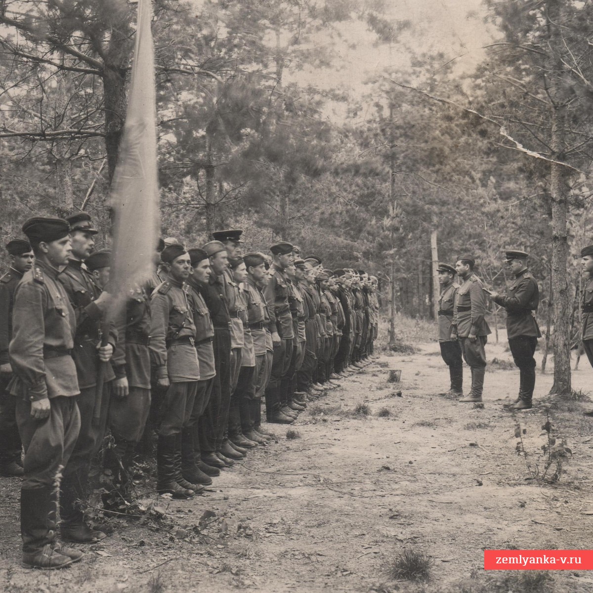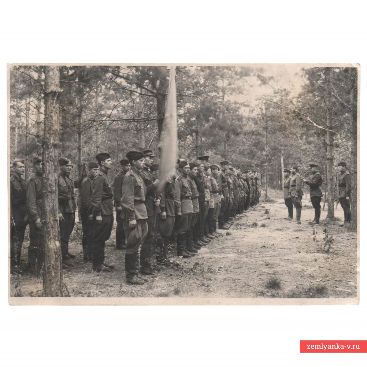 An original and quite rare front-facing shot in very good collector's condition. There are traces of pasting into the album on the back. The size is 113*170 mm. From the front-line album of an officer of the regiment. Guarantee of authenticity.