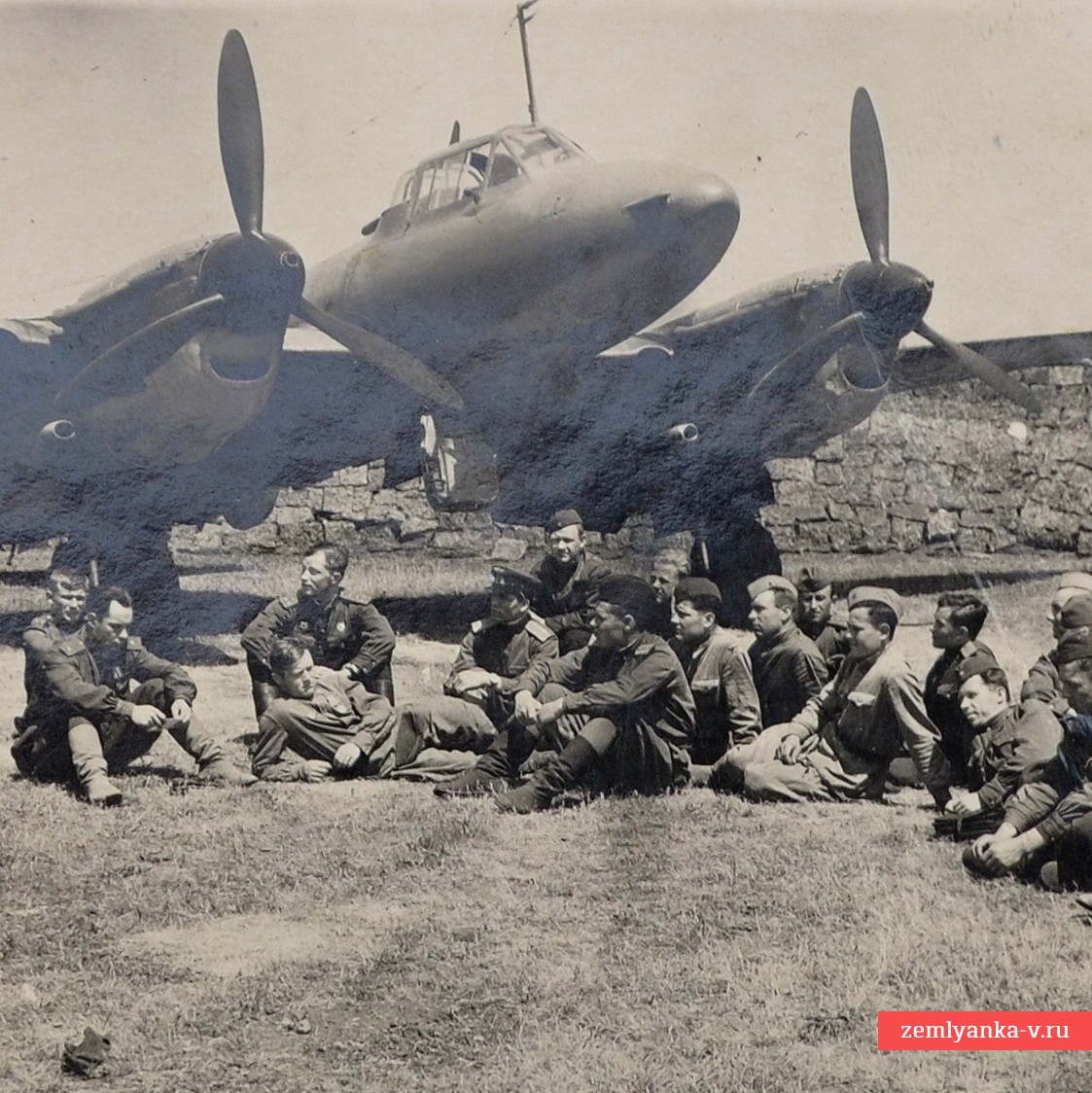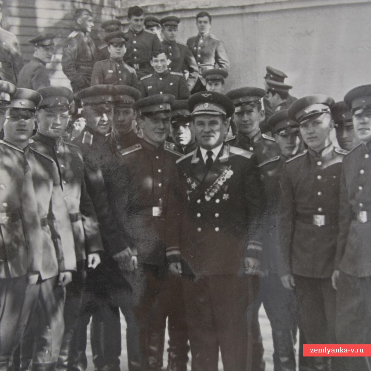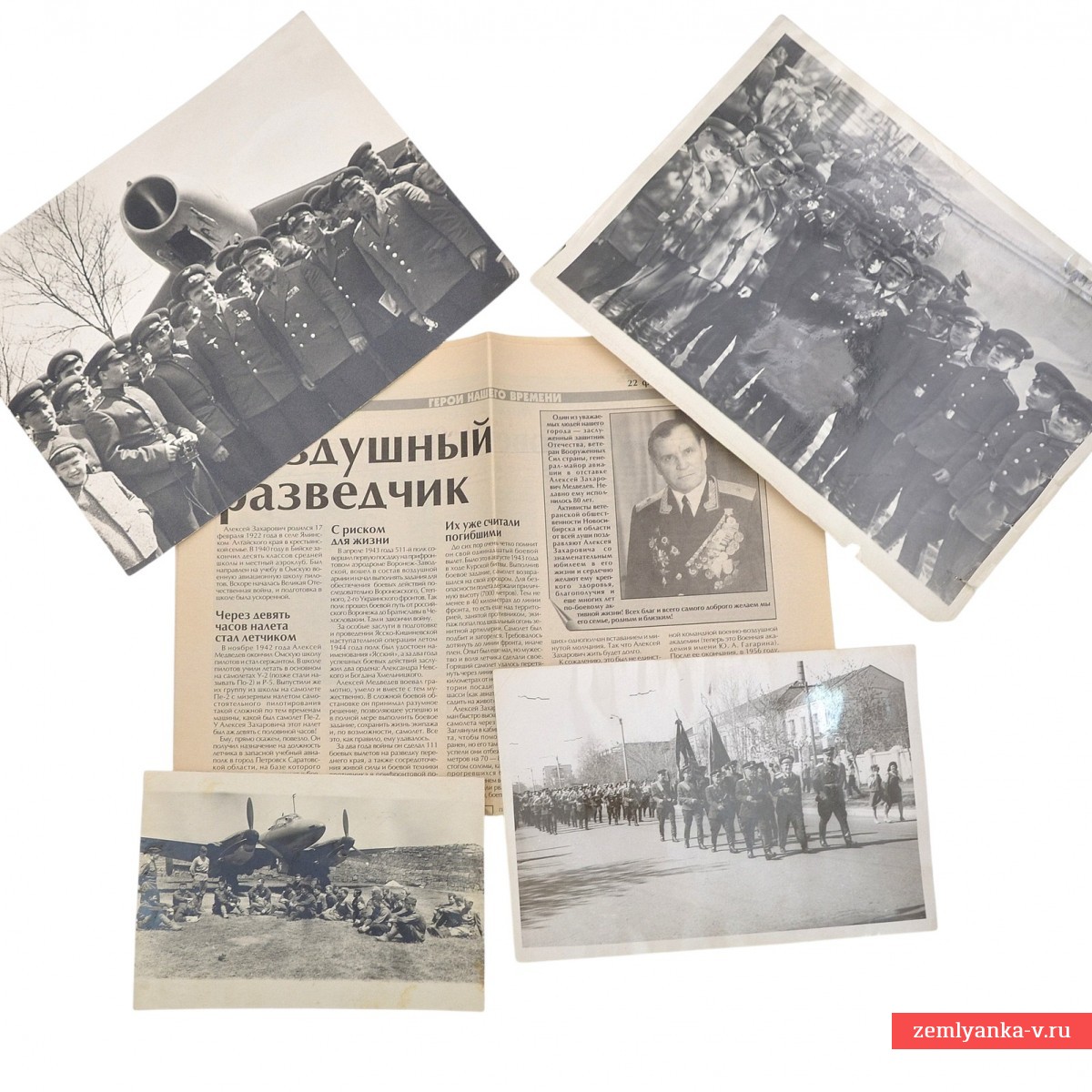 The lot includes three post-war photographs from mass events, one very interesting and rare 1944 photograph from a party meeting near an airplane, as well as a newspaper page with an article about the general. Guarantee of authenticity.