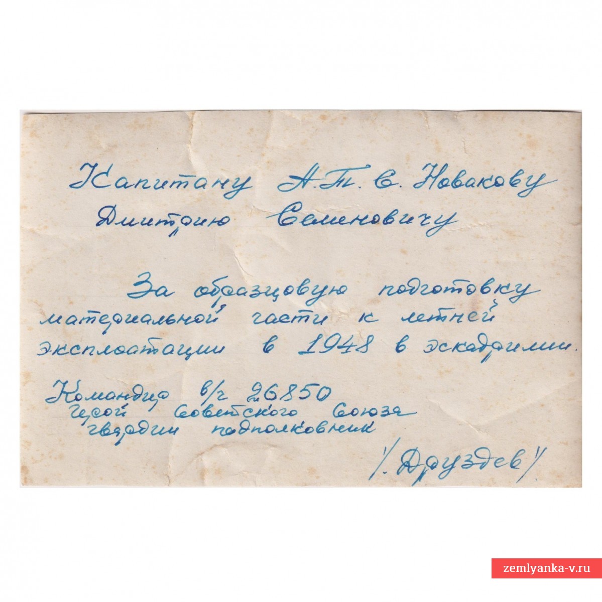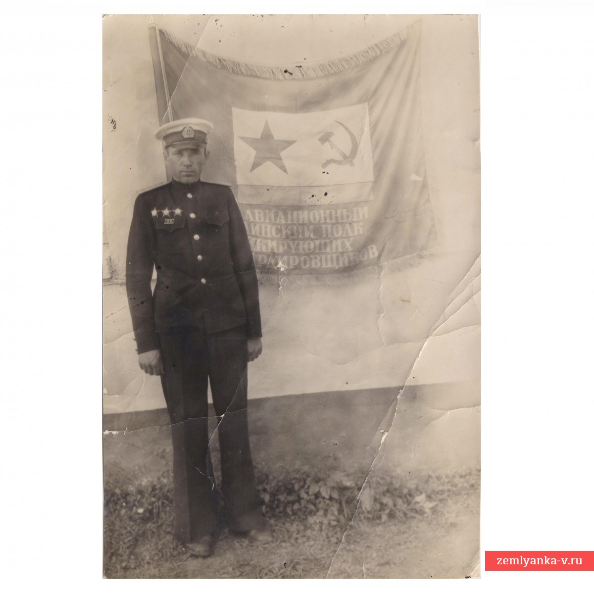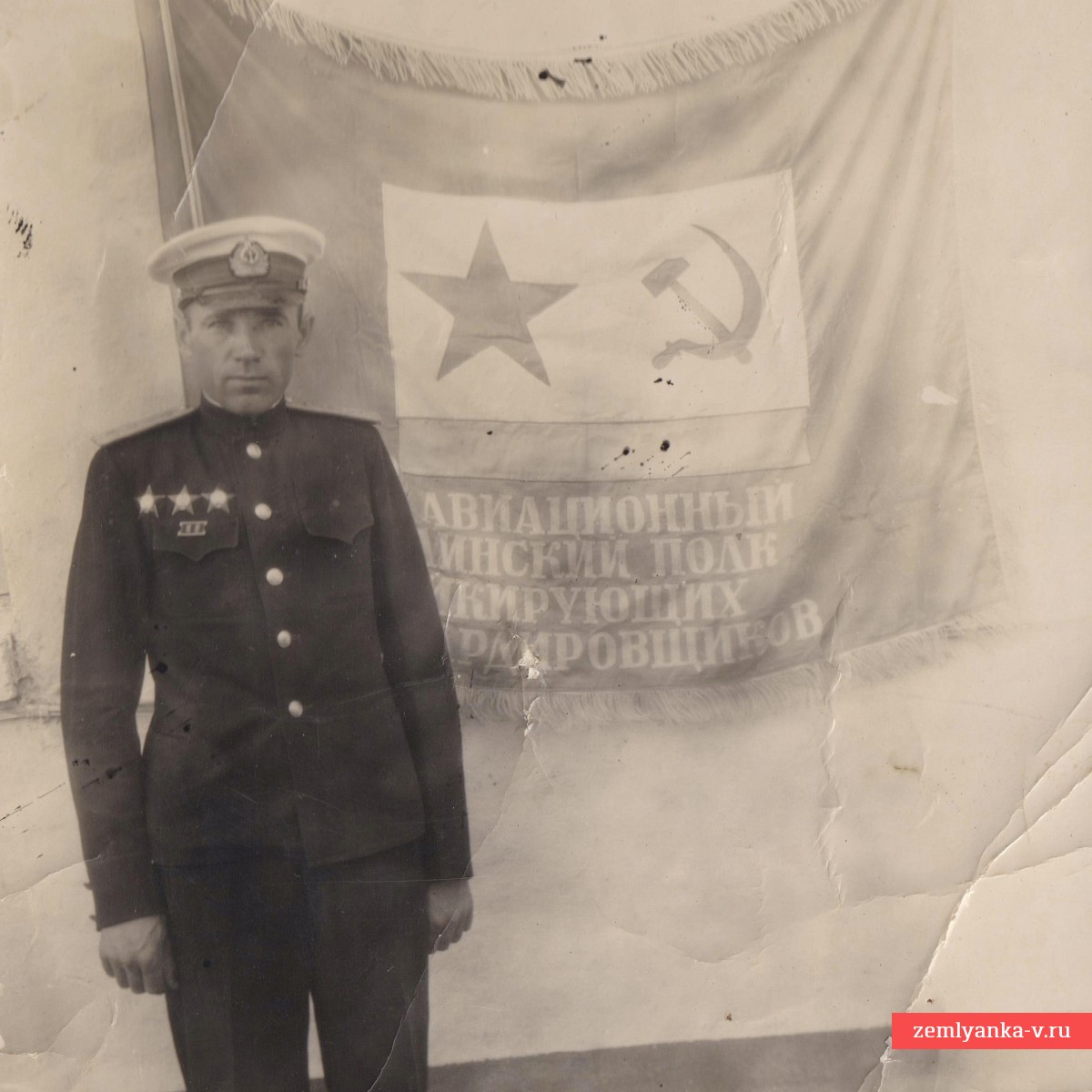 The original award-winning photograph of the banner of the 34th Aviation Regiment of dive bombers is in excellent condition. In the photo, Dmitry Semenovich Novikov is a captain of naval aviation in the Guards, a recipient of 3 orders of the Red Star (he received the first one in 1935 for successfully completing combat training. In the Red Army since October 1932). The back of the photo was signed by Nikolai Ignatievich Druzdev, Hero of the Soviet Union. The size is 105*157 mm. Guarantee of authenticity.