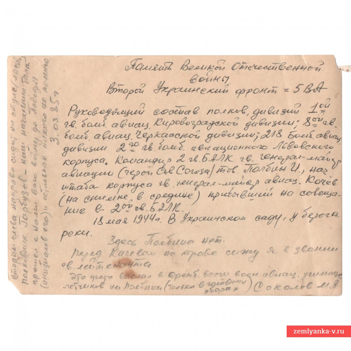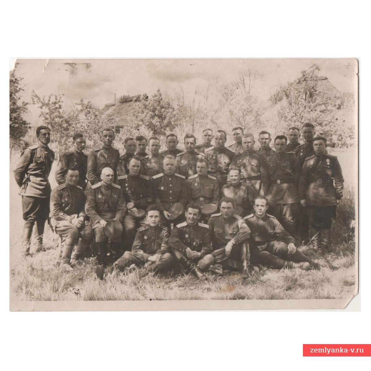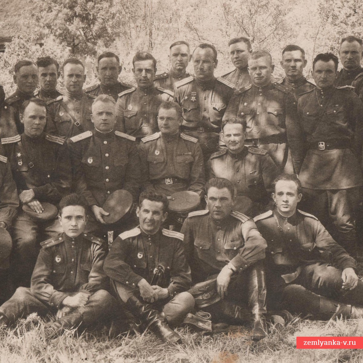 The original group photo taken at the end of the war. The owner of the photo listed the names of the divisions in great detail, as well as the surnames of those depicted. The photo size is 115*160 mm. Guarantee of authenticity.