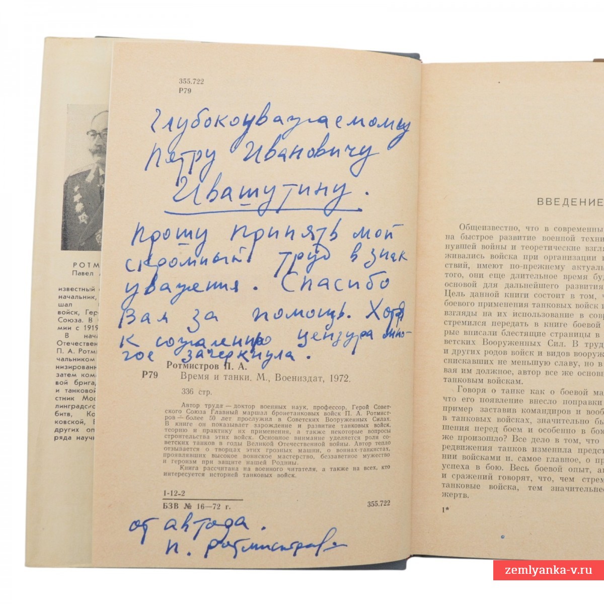 The original edition, written by the commander of the legendary 5th Tank Army, which took part in the battles for Stalingrad, the Battle of Kursk and many others, P.A. Rotmistrov. With a handwritten dedication from the marshal. This is a military historical work, first published by the publishing house "Voenizdat" in 1972. The author describes the origin and evolution of tank forces, analyzing the theory and practice of their use. A significant part of the book is devoted to the role of Soviet tanks in the Great Patriotic War, as well as views on the construction of armored forces before and during the conflict. Rotmistrov talks about the creators of combat vehicles and the exploits of tank soldiers. In the original super-cover. The format is 135*205 mm. The volume is 336 pages. The dedication is addressed to Peter Ivanovich Ivashutin (nee. Ivashutich; September 5 [18], 1909, Brest-Litovsk, Russian Empire — June 4, 2002, Moscow, Russia) was the head of the state security and military intelligence agencies of the USSR. General of the Army (1971), Hero of the Soviet Union (1985). Guarantee of authenticity.