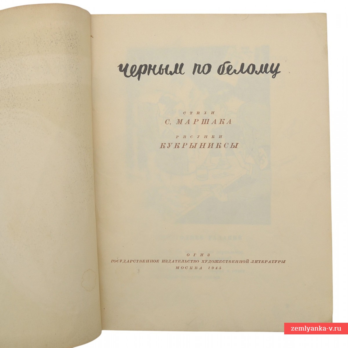 A rare edition of the end of the war in good condition. This is a joint work of the famous poet. Samuel Marshak and the team of satirical artists Kukryniksov (poems by Samuel Marshak; illustrations by Kukryniksy (creative union of artists M. Kupriyanov, P. Krylov and N. Sokolova). OGIZ Goslitizdat (State Publishing House of Fiction). The book includes such famous works as "The Boy from the village of Popovka" and "The Last Line of Defense." Paperback. The volume is 72 pages. The format is 200*206 mm.The collection "In Black and White" became an important example of Soviet military satire, which inspired people and supported faith in victory. Guarantee of authenticity.