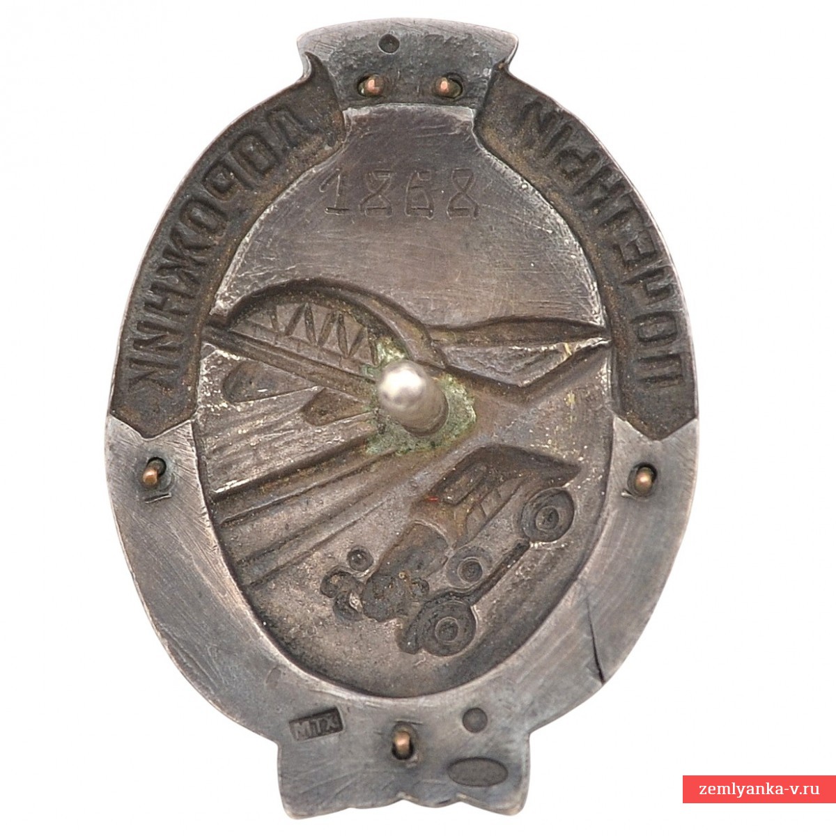 An original and quite rare sign in good condition. 875 silver, enamel. A sign produced by the Moscow Association of Artists (MTX). The sign has an oval shape, is decorated with the inscription "HONORARY ROAD WORKER", a red star and a banner. In the center there is a road with a car leading to the bridge. Without a twist. Slight tinting of the red enamel. Guarantee of authenticity.