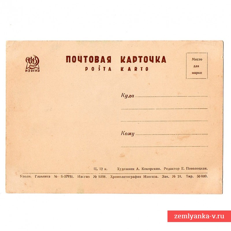 Original postcard of the great Patriotic war in very good collectible condition. Clean. The circulation of 50000. Rare. The guarantee of authenticity.