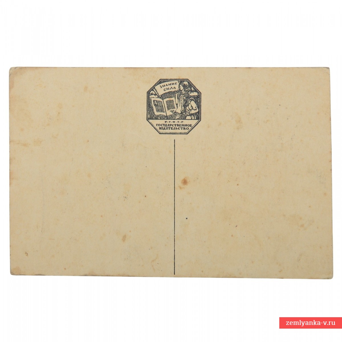 Authorship and period: The postcard was published by the State Publishing House of the RSFSR (GIZ) between 1919 and 1920. Although the artist's name is not indicated on the postcard itself, it is part of a series of propaganda materials created by the famous Soviet graphic artist. By Dmitry Moore (Orlov).