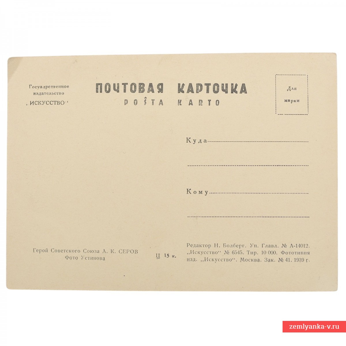 The original pre-war postcard is in excellent condition. The State Publishing House "Art", Moscow. The circulation is 10,000. Not filled in. Guarantee of authenticity.