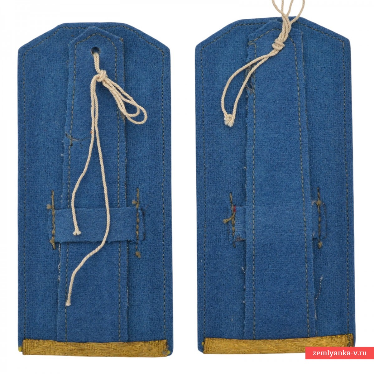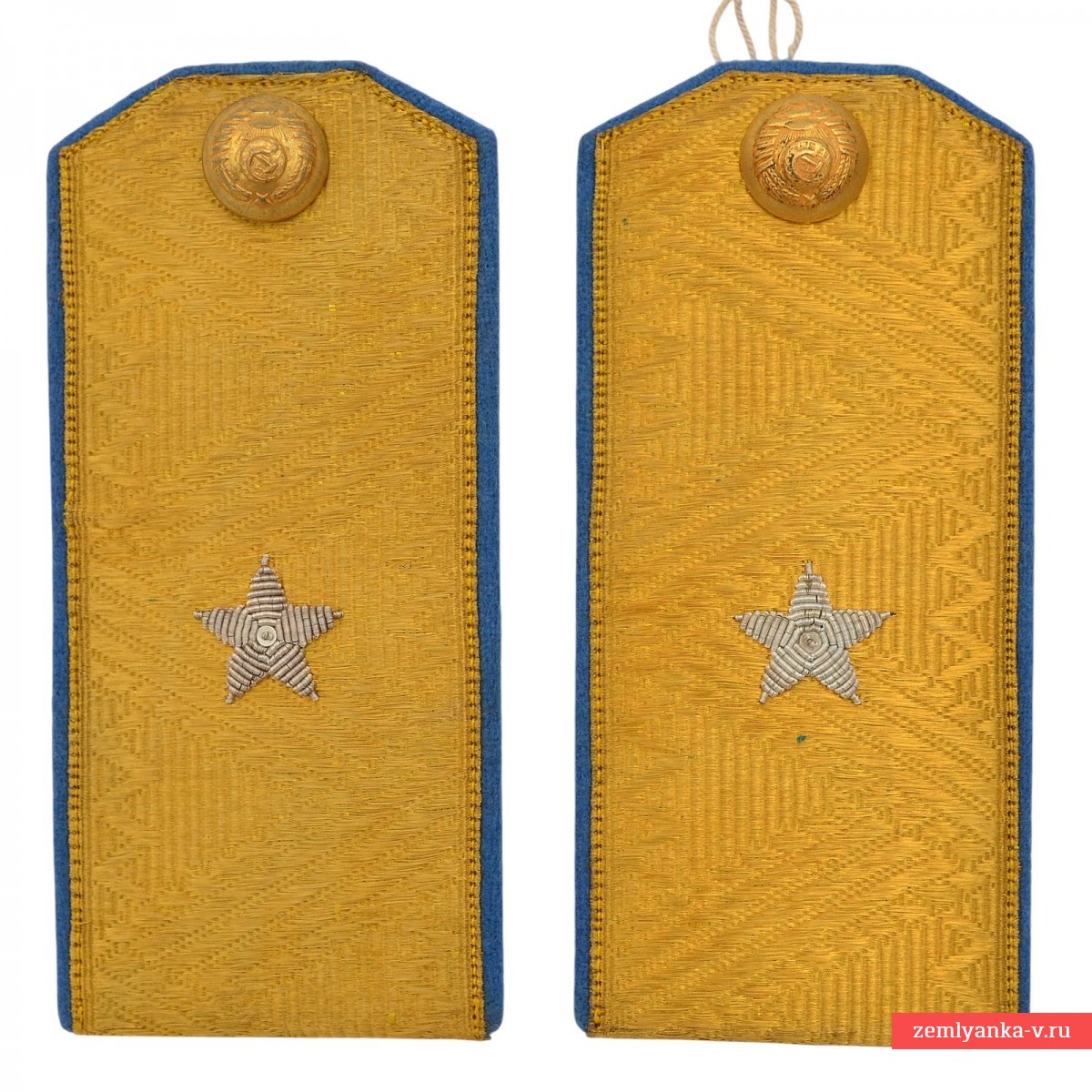 Blue cloth, gold braid. A pair of original shoulder straps in excellent, unworn collector's condition. Height 2. Shoulder straps of this type were introduced by decree of the Presidium of the Supreme Soviet of the USSR on 06.01.1943 "On the introduction of new insignia for the personnel of the Red Army." Buttons with a coat of arms on 11 ribbons. Guarantee of authenticity.