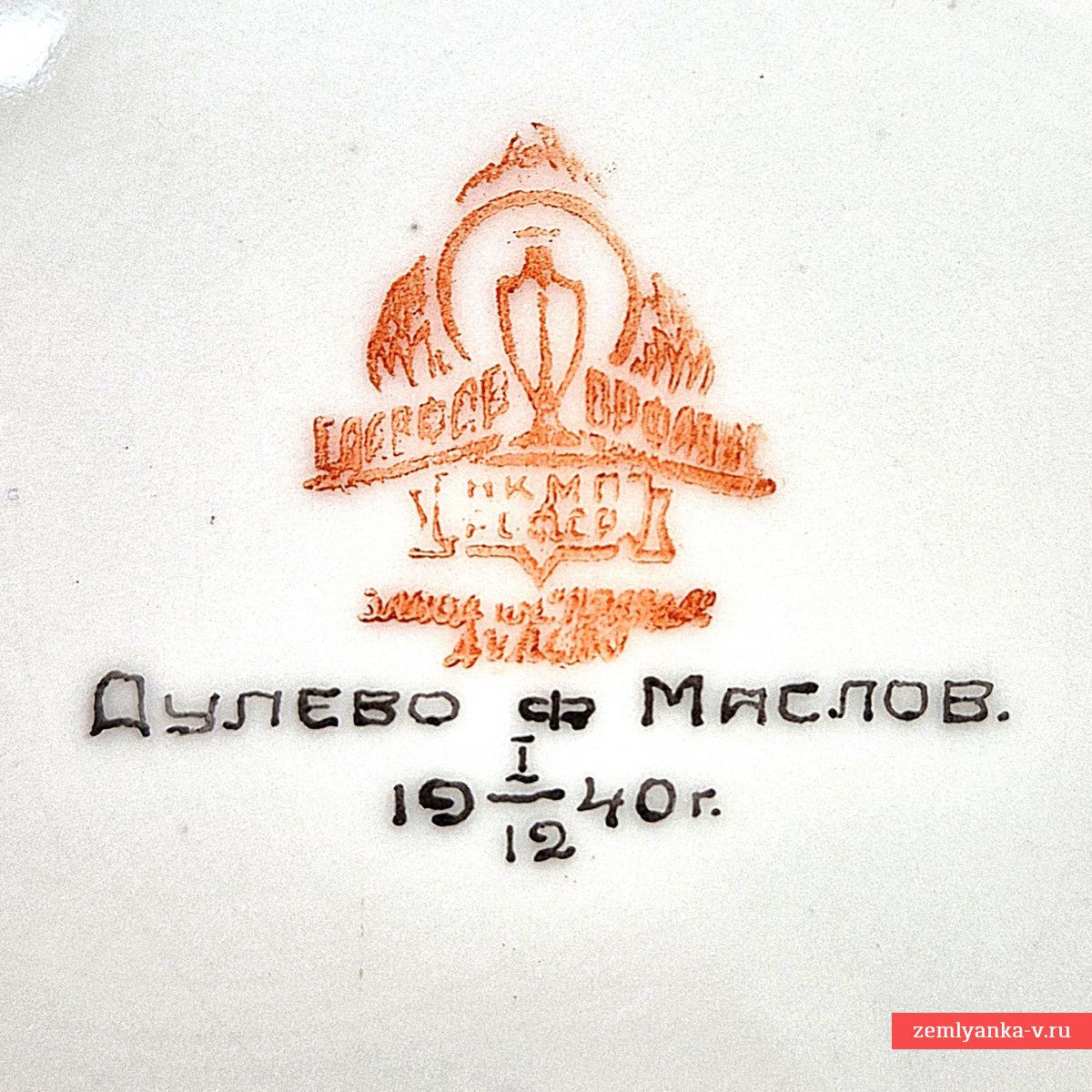 Porcelain, decal, gilding. An original and extremely rare dish, hand-painted by Fyodor Maslov, head of the Dulevsky Factory's art laboratory, in 1940. Made in a single copy. High level of painting. The diameter of the dish is 320 mm. Guarantee of authenticity. It's rare.