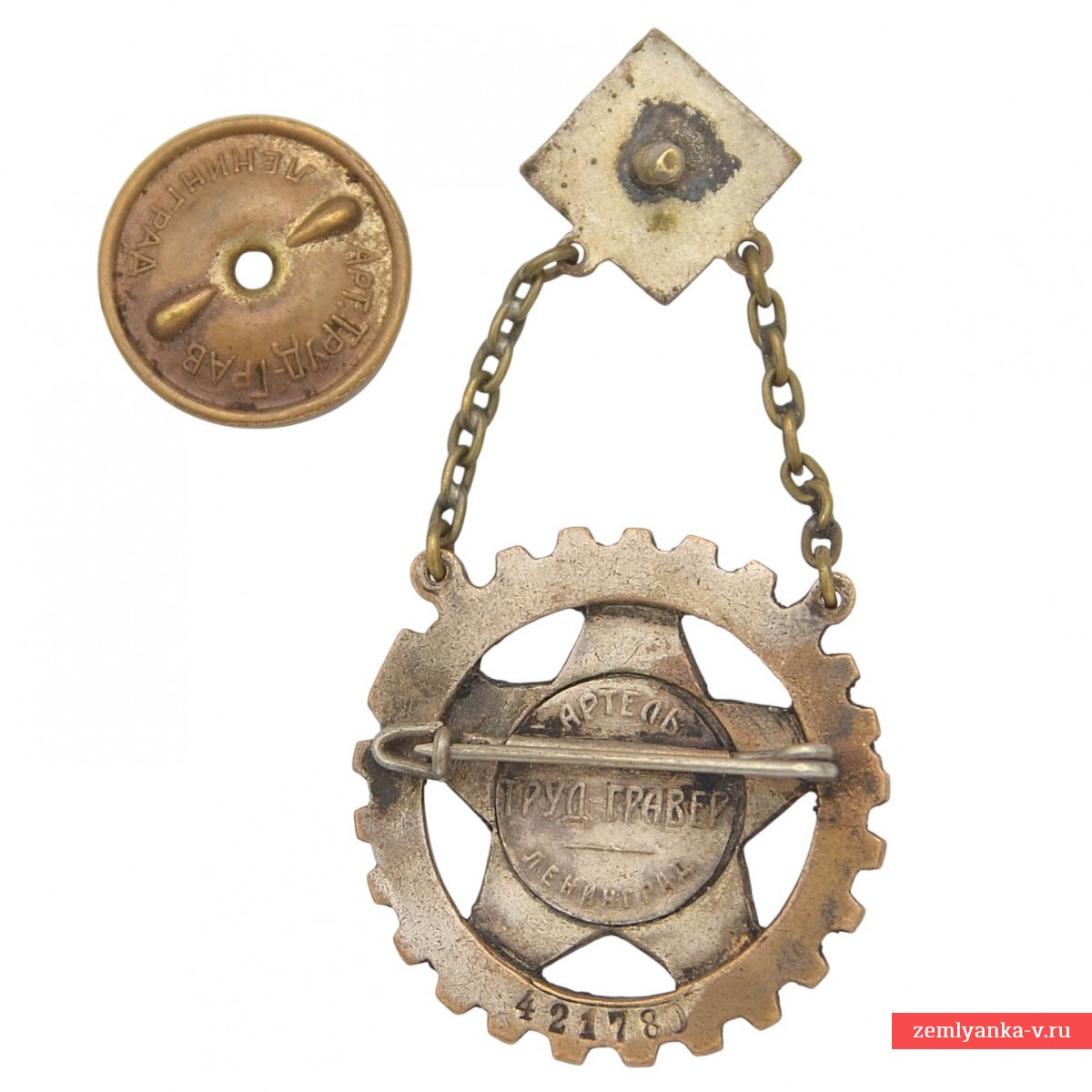 The original badge is in good collector's condition. Steel, silver plating, stamping, enamel. The manufacturer is the Trud-Engraver artel. In the center of the sign, an athlete is depicted tearing the finishing tape with the inscription "Ready for work and defense." A diamond-shaped element (suspension) on top with the abbreviations "CEC of the USSR" and "VSFC" (All-Union Council of Physical Culture), connected to the main sign by two chains. The award number 421780 is stamped on the reverse. Guarantee of authenticity.