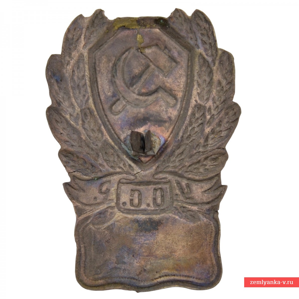 Brass, stamping. The original sign is in good condition for an object made of earth. Approved by Order of the Republic's Militia No. 180 dated 03/20/1923. The lacquer coating of the shield and ribbon is lost. The size of the sign is 44*65 mm. Guarantee of authenticity.