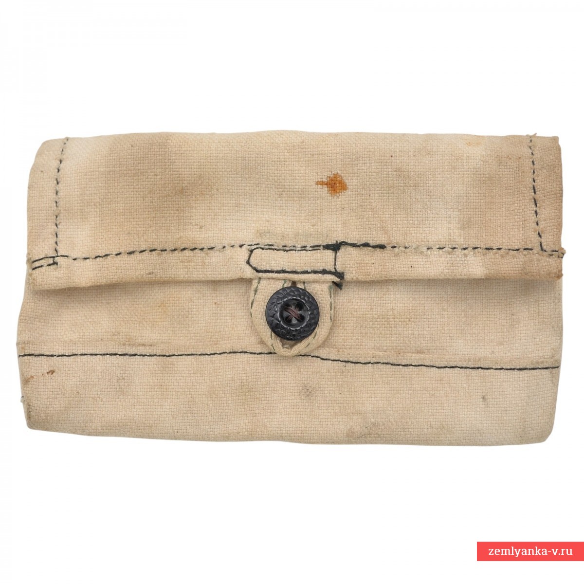 An original and quite rare accessory of a Soviet soldier in storage condition. Tarpaulin, plastic button. Contamination of the fabric. Stamps are missing. Guarantee of authenticity.