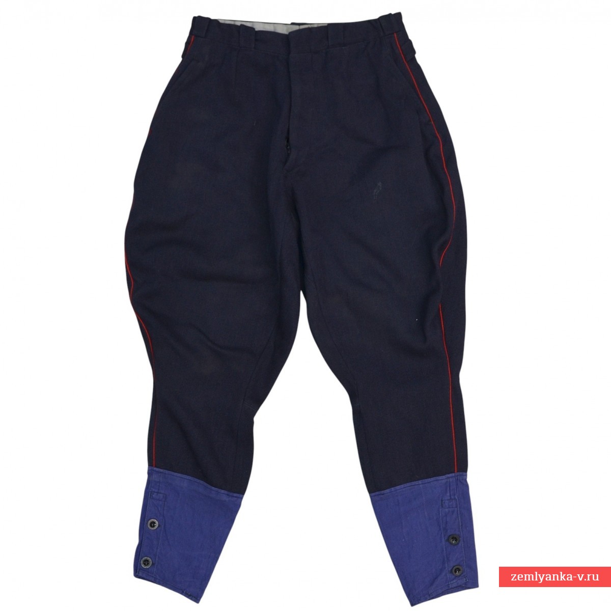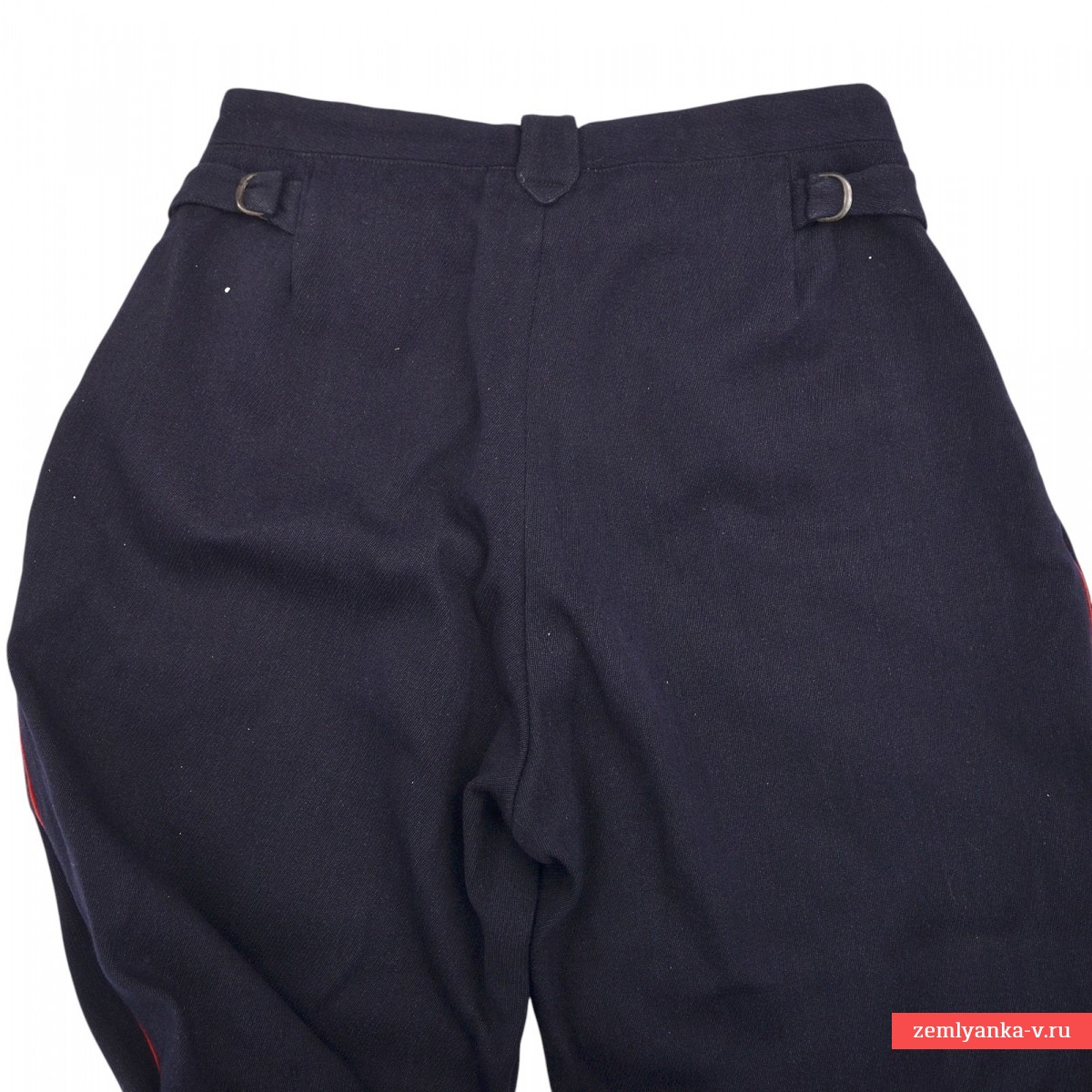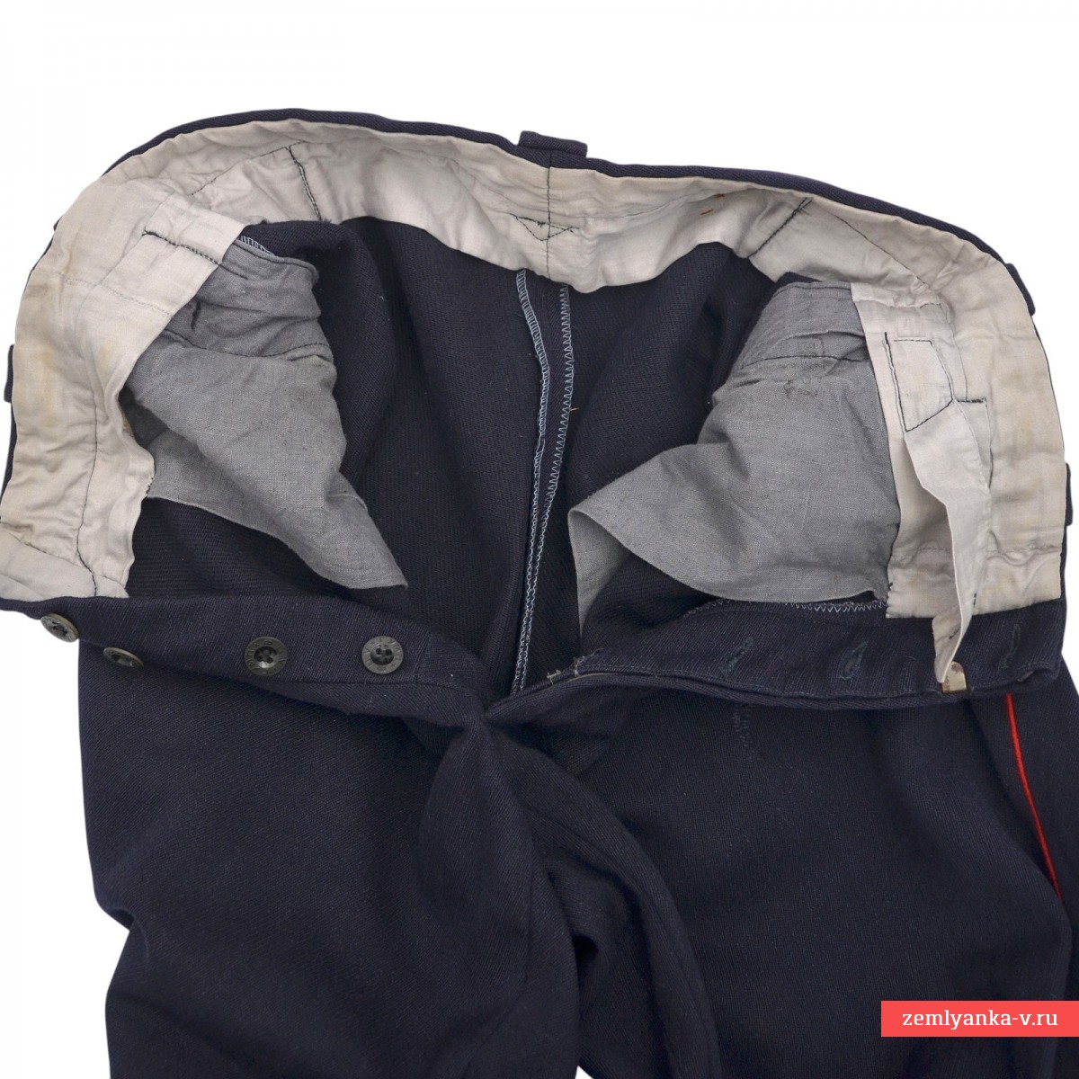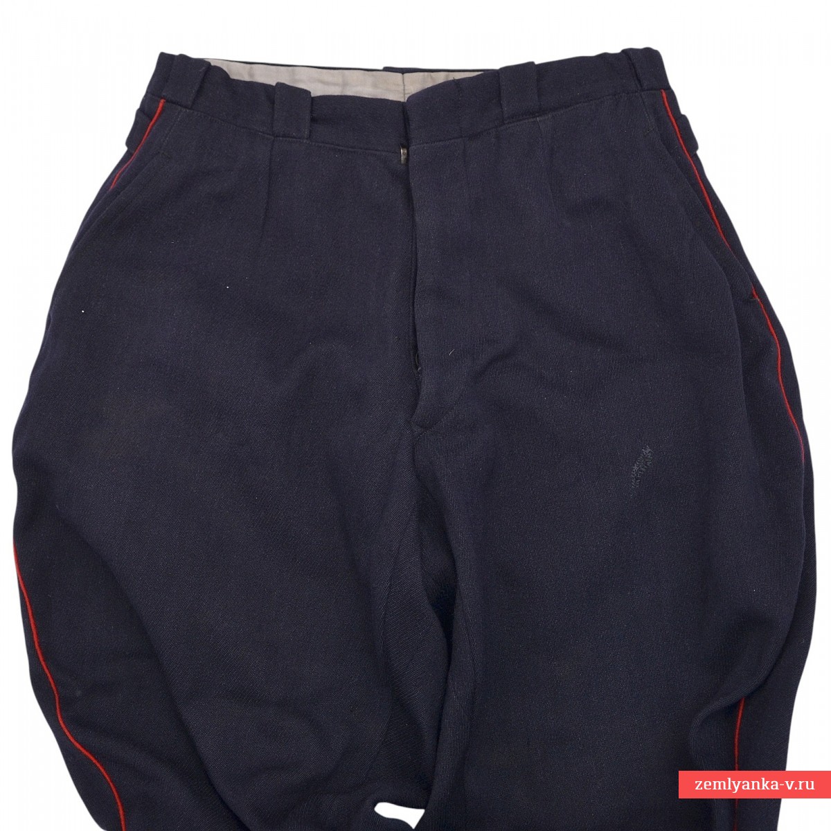 The original and quite rare breeches are in good condition. They are made of diagonal woolen fabric in dark blue with red edging on the sides. The size is average. Introduced by order of the Ministry of Internal Affairs USSR No. 0553 dated 09/12/1947. Guarantee of authenticity.