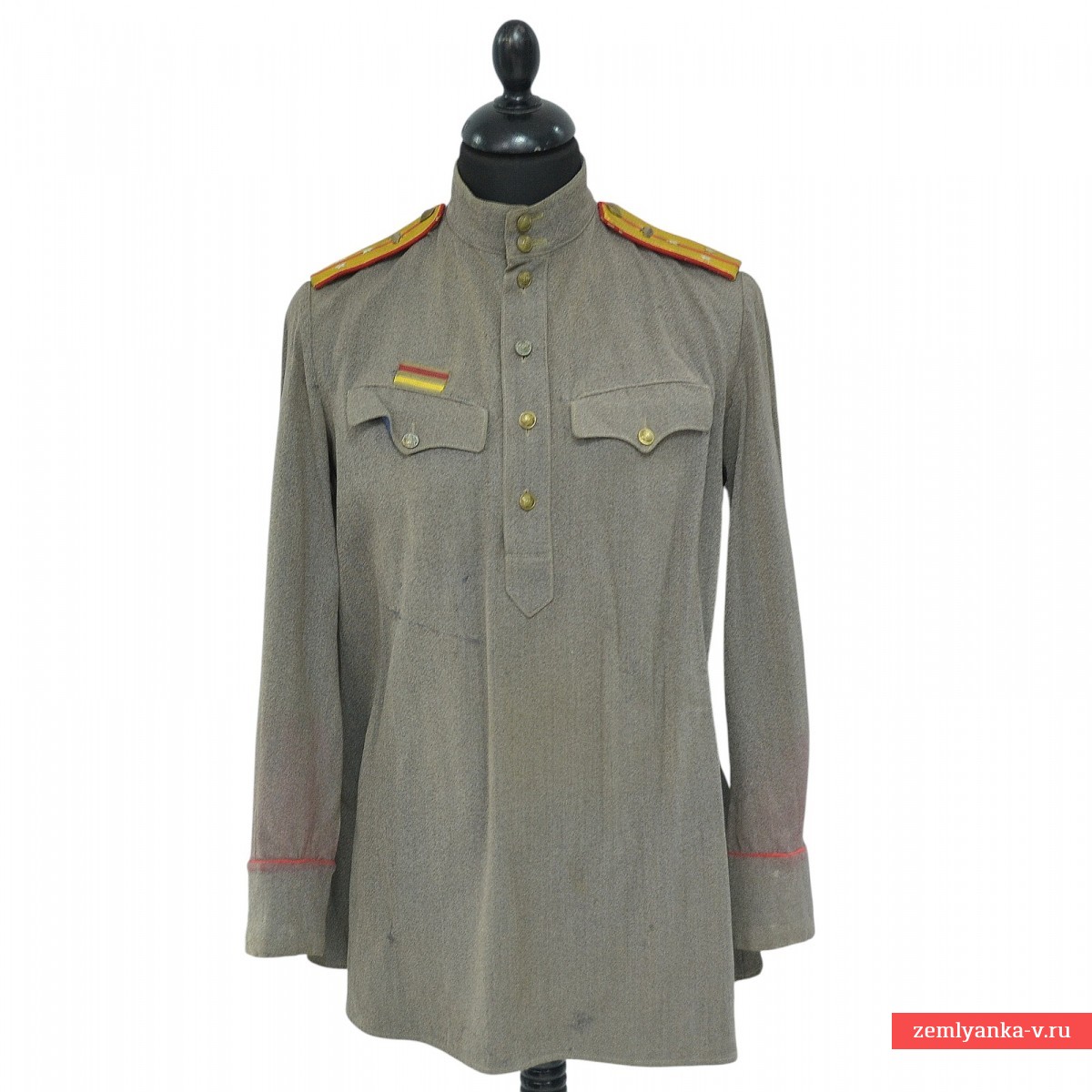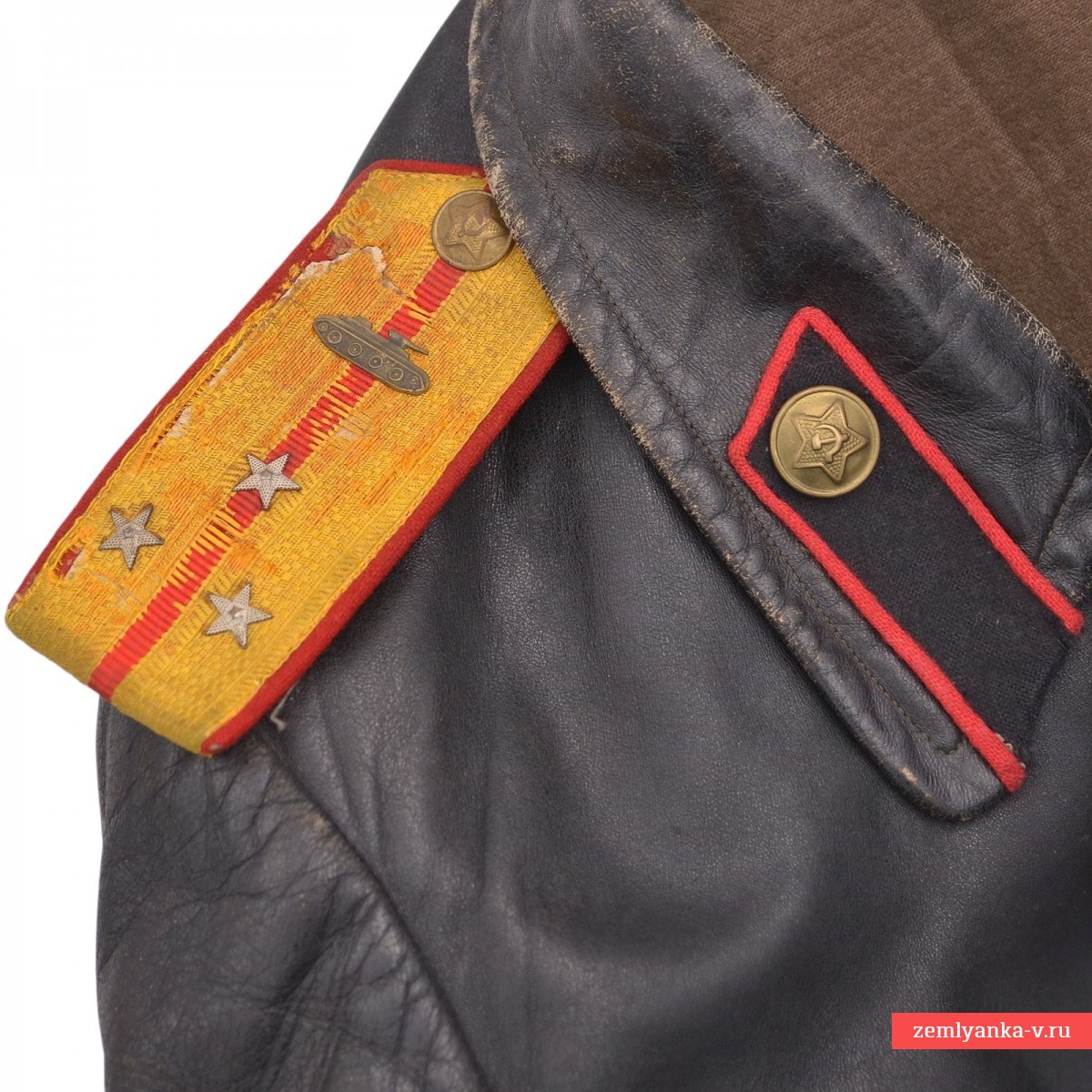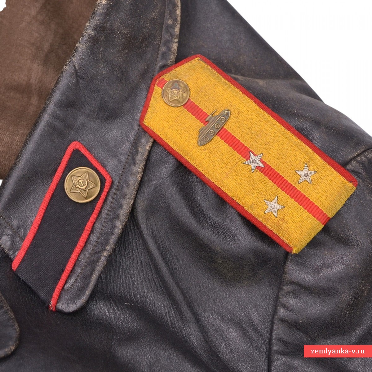 A very rare and interesting set, which includes a 1934 model tank aviation helmet, glasses, a 1934 model waist belt with a TT pistol holster, a leather jacket with shoulder straps of a senior lieutenant of the ABTV and a turtleneck tunic with identical shoulder straps. Shoulder straps of the 1943 model with silk braid, cloth buttonholes. The shoulder strap on the right shoulder of the jacket has minor field damage. Large jacket size (50-52), tunics 46-48. Jackets of this type were widely distributed among officers of tank troops, and were usually purchased at their own expense. A tunic of improved tailoring, with red piping on the cuffs. A rare complete mannequin, perfect for decorating a museum showcase or a private collection. Guarantee of authenticity.