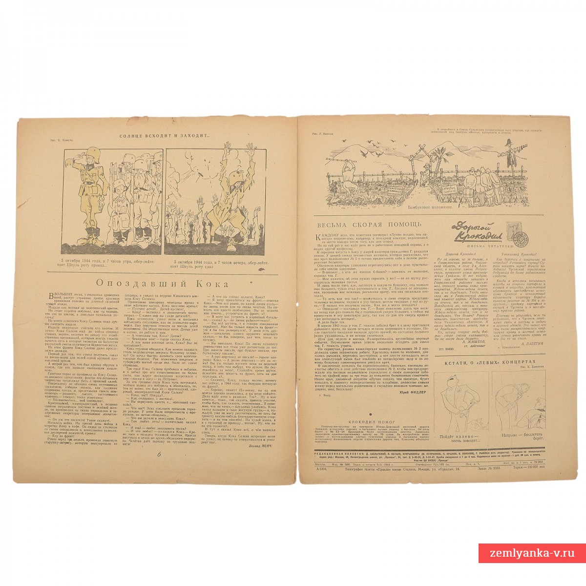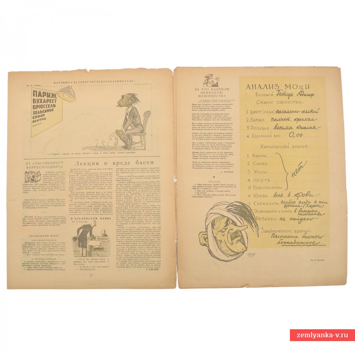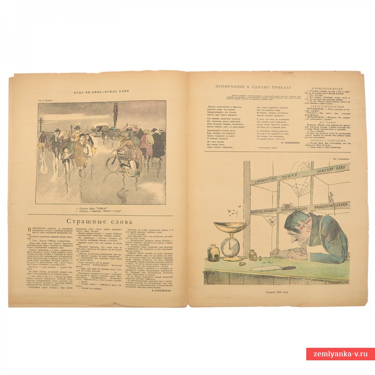Paper. The magazine is in good collector's condition. The size is 339*264. Color illustrations and caricatures. The cover bears a pronounced propaganda character, focusing on the military actions and the victorious spirit of the Red Army in 1944, when the outcome of the war was already obvious. In the foreground, there is a soldier looking through binoculars. Two Soviet soldiers are reflected in the lenses of binoculars going on the attack. This image symbolizes the concentration and determination of the Soviet troops, as well as their confidence in an early victory. The image highlights the unity of the army and the people in the fight against the enemy. Guarantee of authenticity.