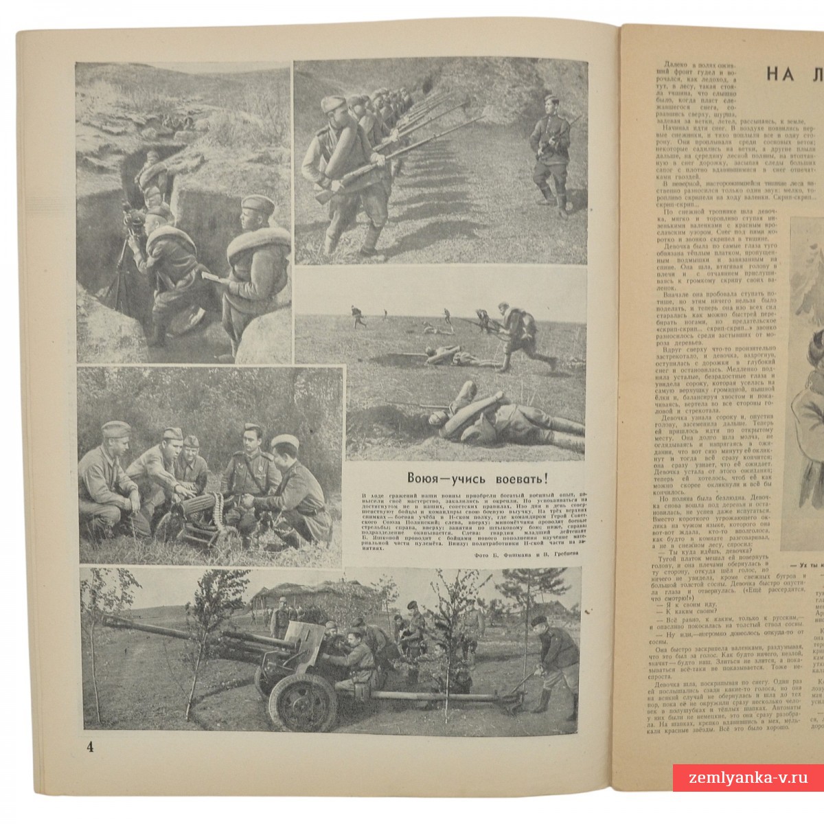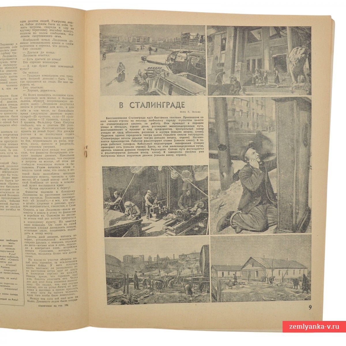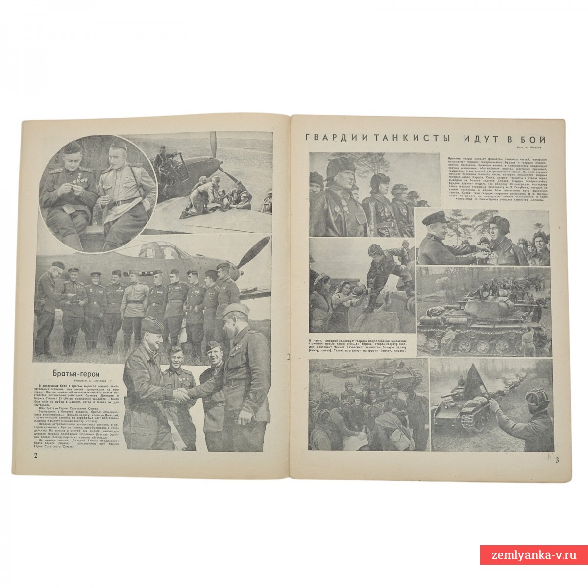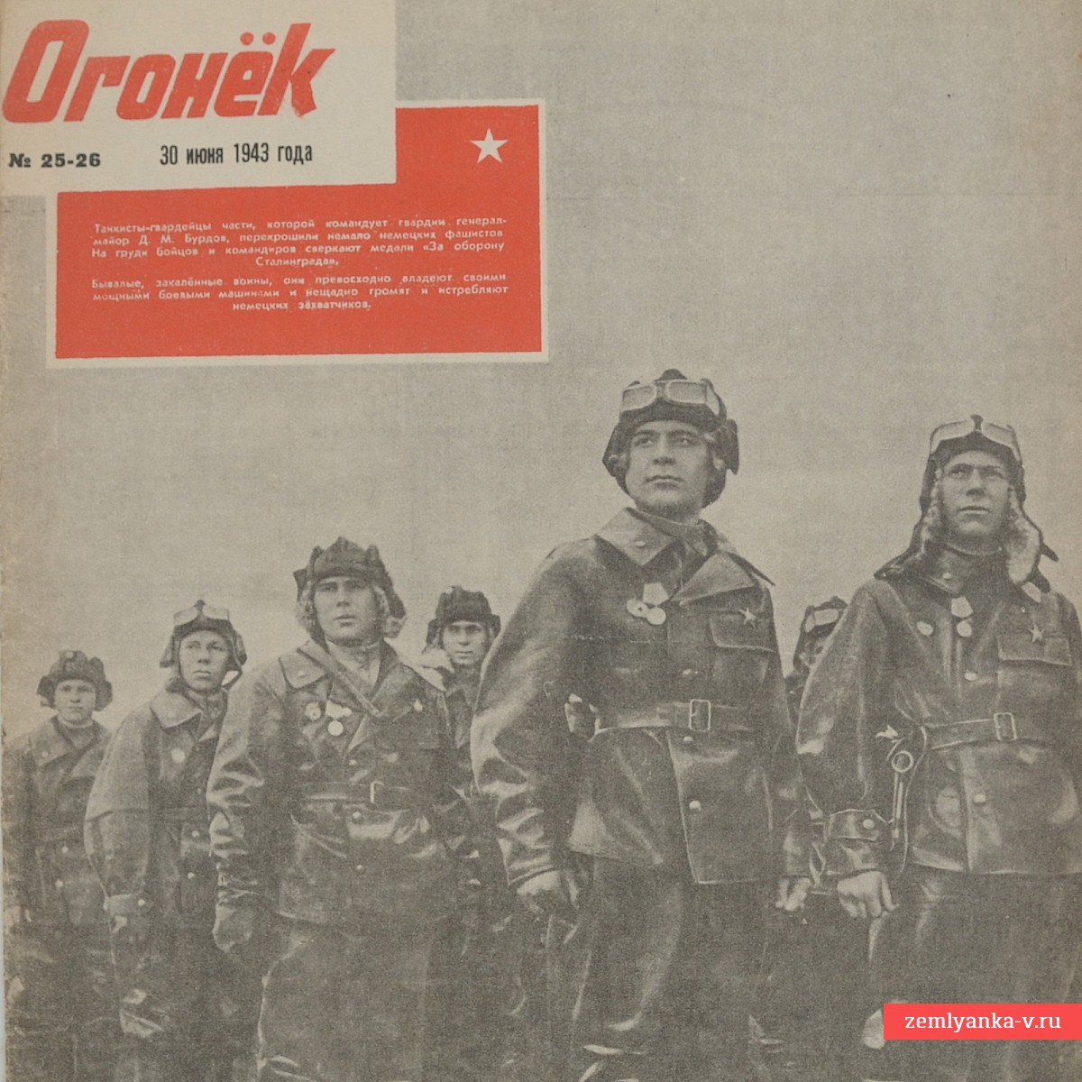 The original magazine is in good collector's condition. The cover depicts tankmen in winter tank helmets and overalls, on the chest of which are visible military orders and medals. In a red frame under the heading is a text glorifying the guard units under the command of the Guard Major General A.M. Burda. The text notes that these fighters and commanders, many of whom were awarded the medal "For the Defense of Stalingrad," mercilessly exterminate the German invaders on their powerful combat vehicles.The format is 270*340 mm. Color and black-and-white illustrations. Minor damage to the root. Complete set. Guarantee of authenticity.