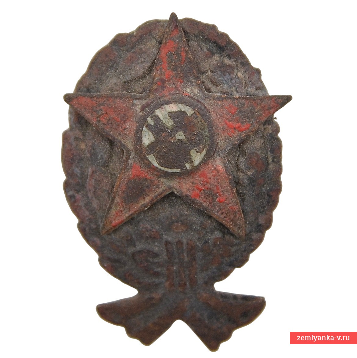Bronze, paint, stamping. The original sign is in good condition. The colorful coating of the star is original. The size of the sign is 22*32 mm. The mounting moustache is modern. Guarantee of authenticity.