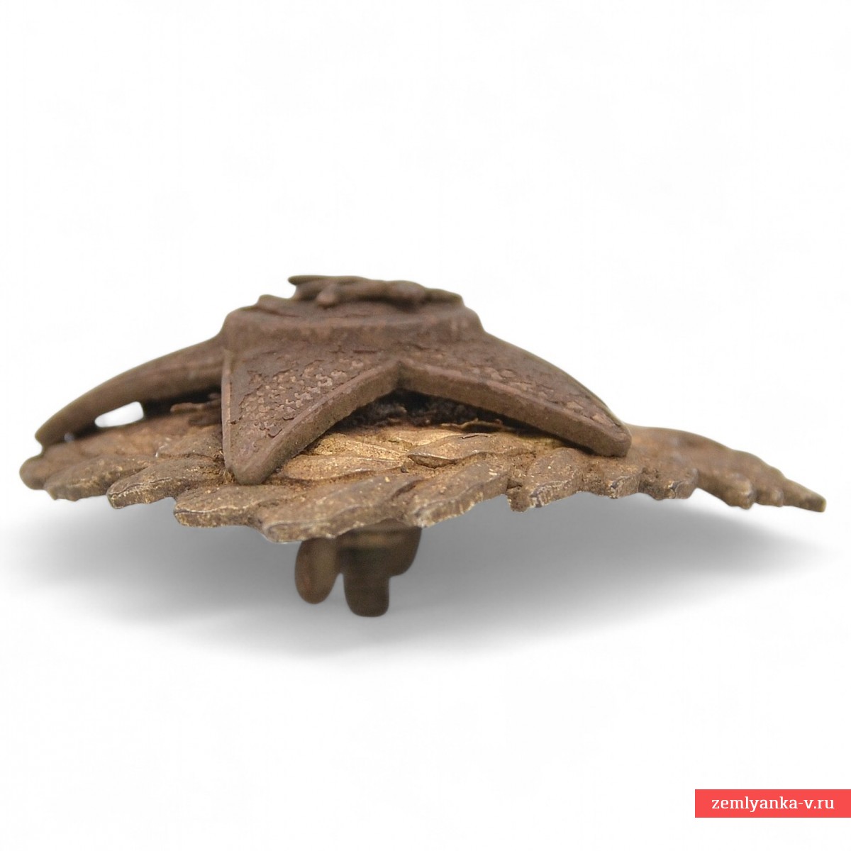 A very rare original sign in good condition for an object made of earth. Bronze, the remains are silvered. The original twist is included. The sign has not been washed or cleaned. One of the plow's fasteners is broken off. Guarantee of authenticity. Signs with original enamel are extremely rare in such preservation.